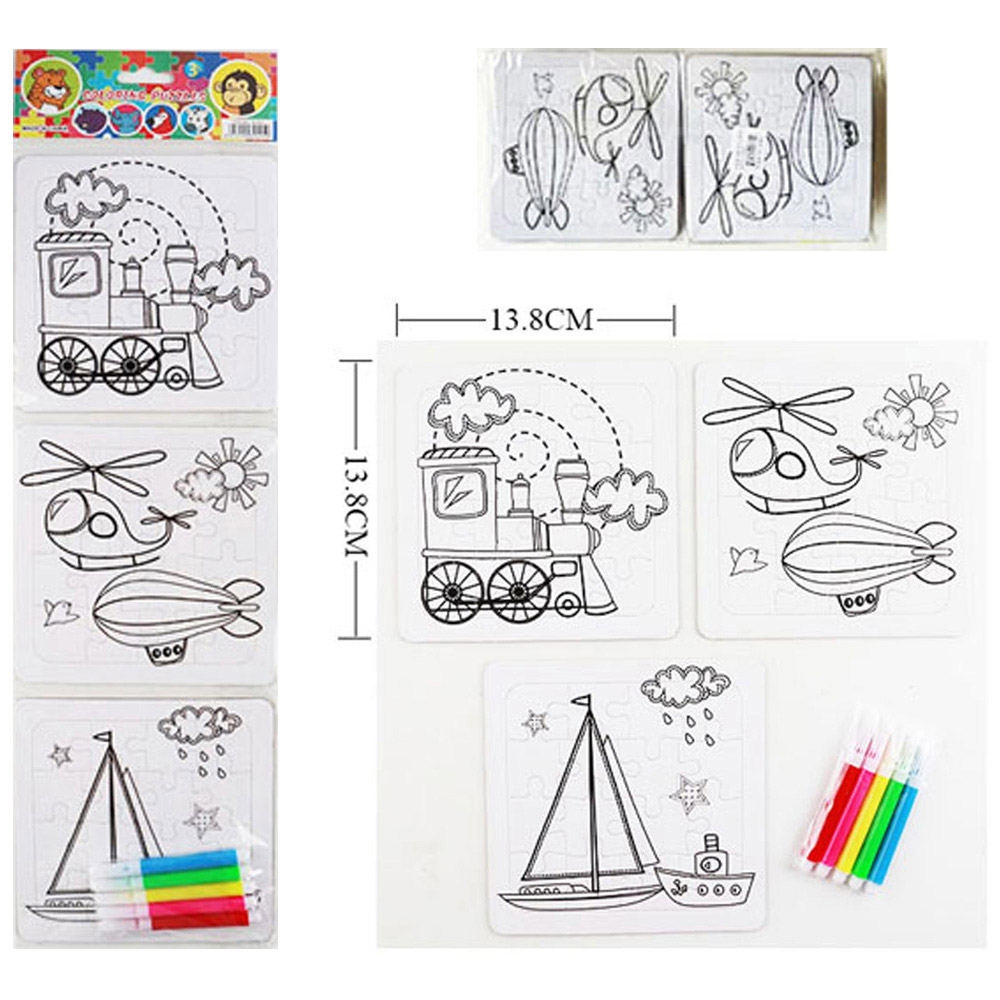 Details • Puzzle Size : 5.25" X 5.25" • Pen Size : 3.25" L • 3 Puzzles with 5 Colored Pens • Inspire creative play with this train journey coloring play set featuring a fun railway scene and bright markers for easy coloring. Perfect for travel, party favors, classrooms, or gifting, it encourages imagination, fine motor development, and screen-free creative time for kids.