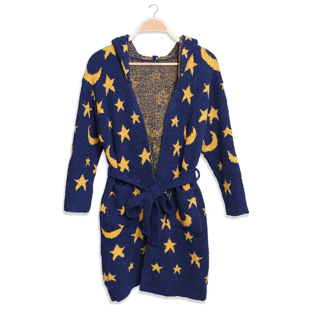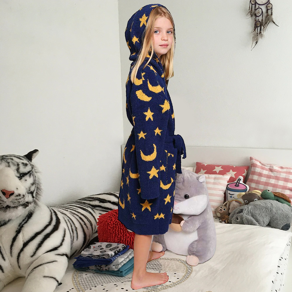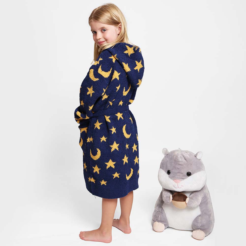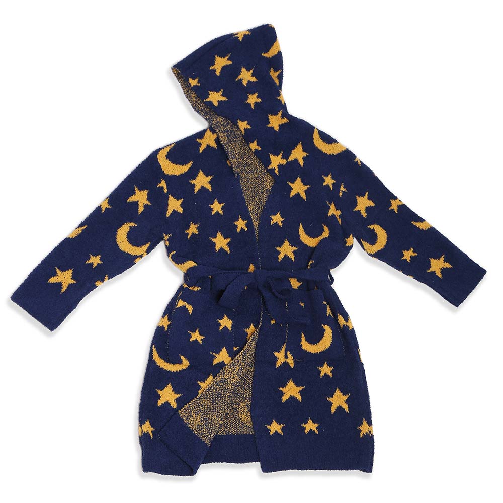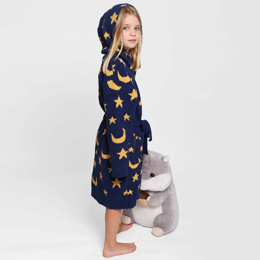 Kids Star Moon Print Hooded Cozy Robe