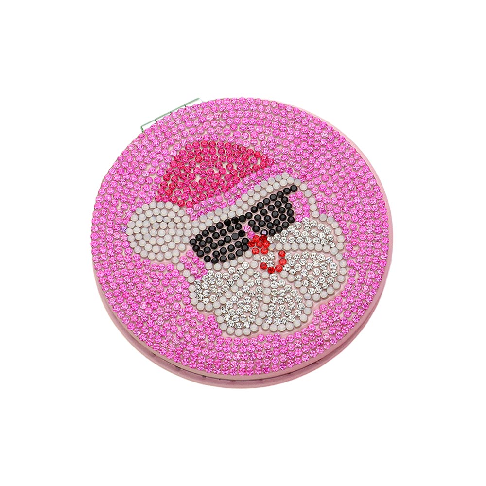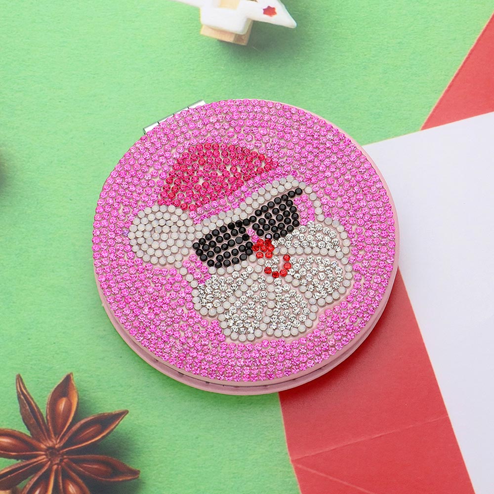 Details • Size : 3.2" X 3.2" • 2 In 1 - Plain Mirror And Magnifying Mirror • Festive round compact mirror featuring a sparkling rhinestone Santa design with sunglasses. Portable, stylish, and perfect for holiday touch-ups or gifting, this mirror adds a cheerful seasonal charm.
