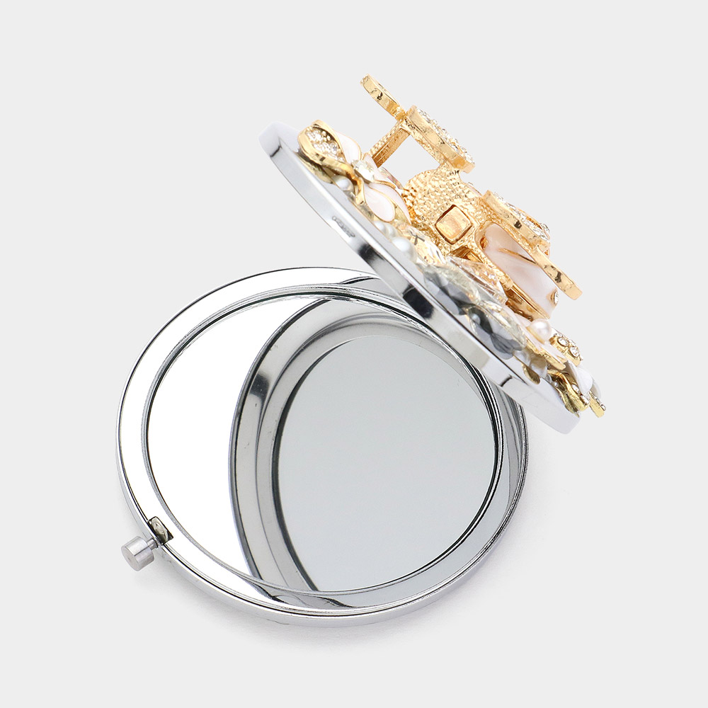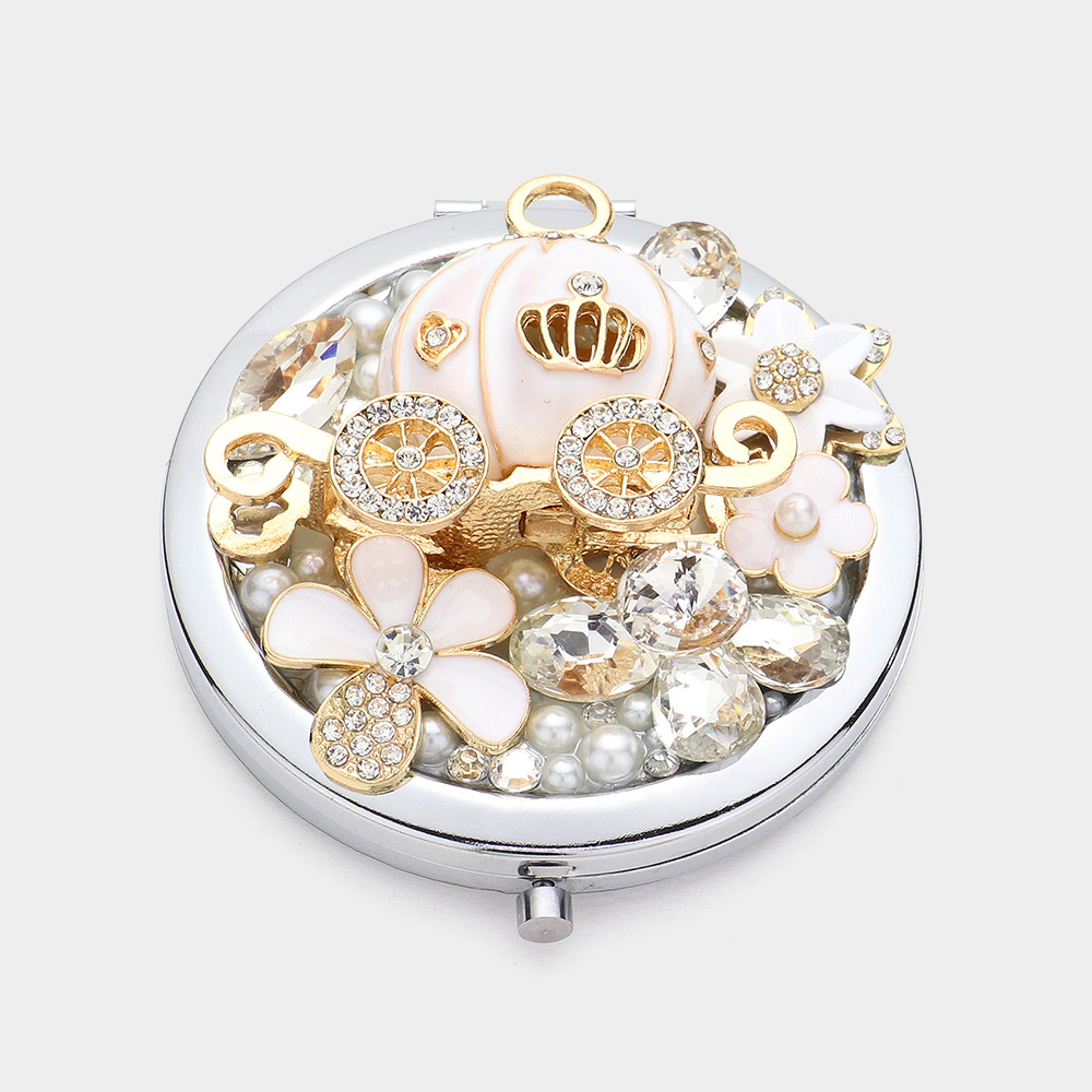 Pearl Glass Stone Enamel Flower Pumpkin Carriage Embellished Circle Compact Mirror