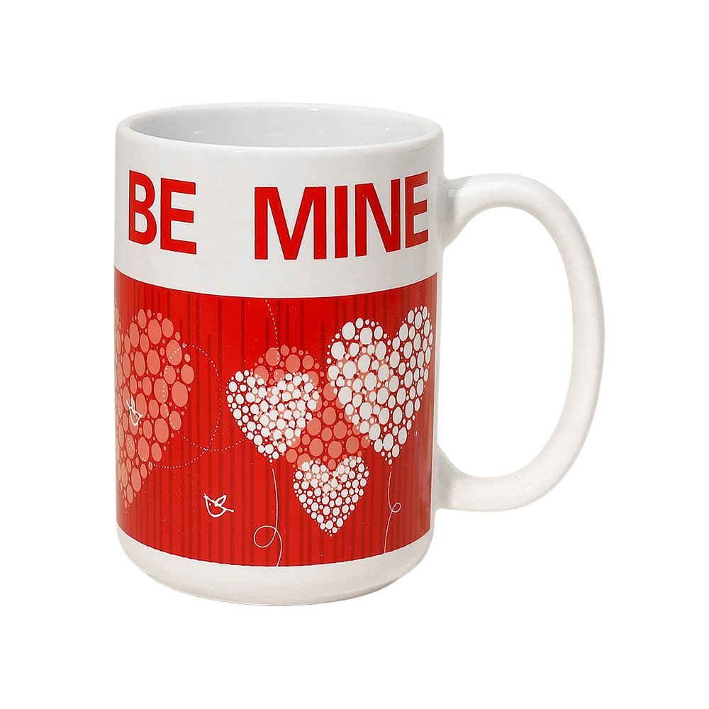 • Charming Valentine-themed coffee mug featuring a bold “Be Mine” message and heart balloon design. Perfect for gifting, daily use, or seasonal dĂ©cor. A great way to add a touch of love to morning routines, office desks, or special occasions. Ideal for Valentine’s Day gifting.