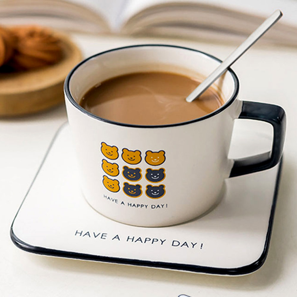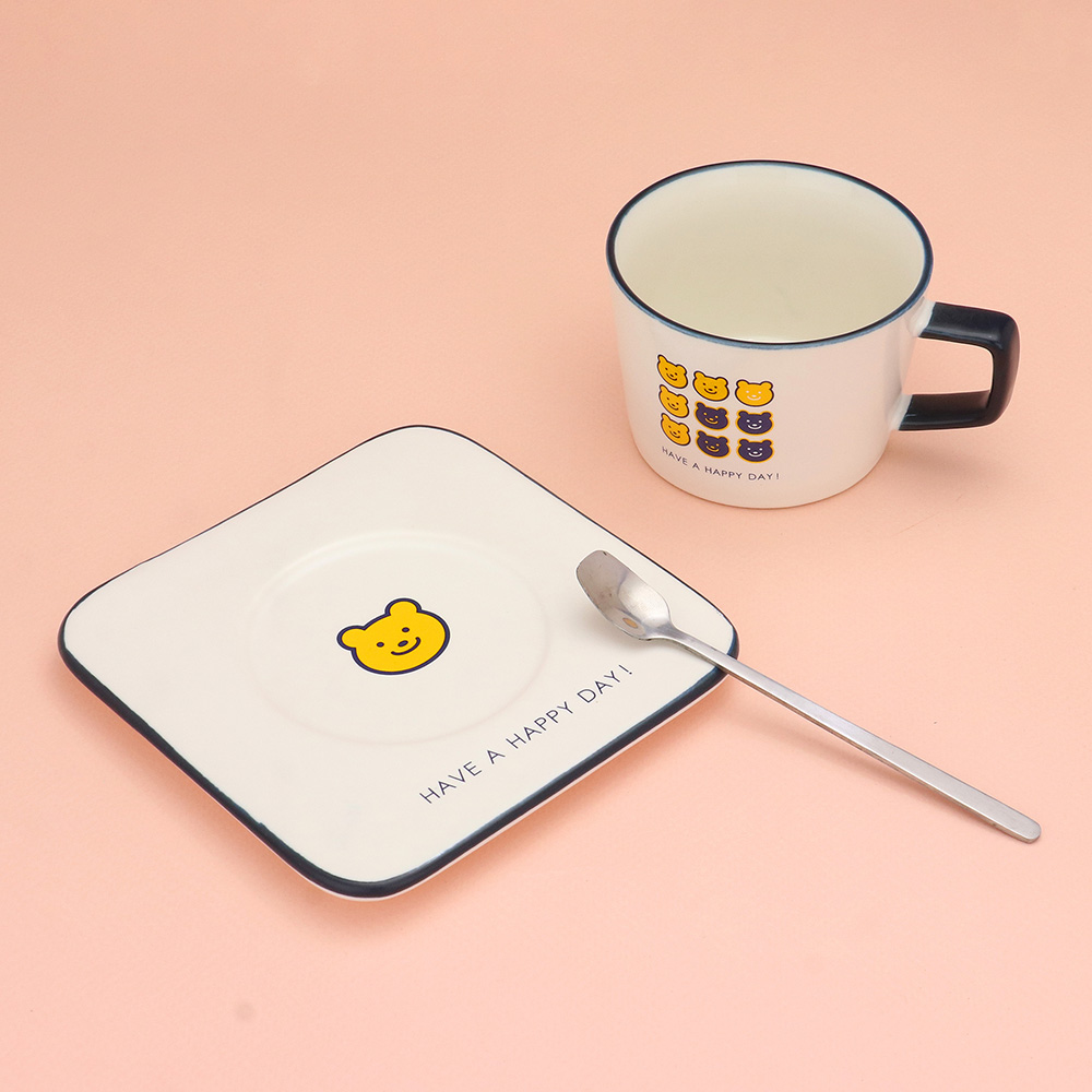 Have a Happy Day ! Message Cute Bear Ceramic Mug Cup and Saucer Set