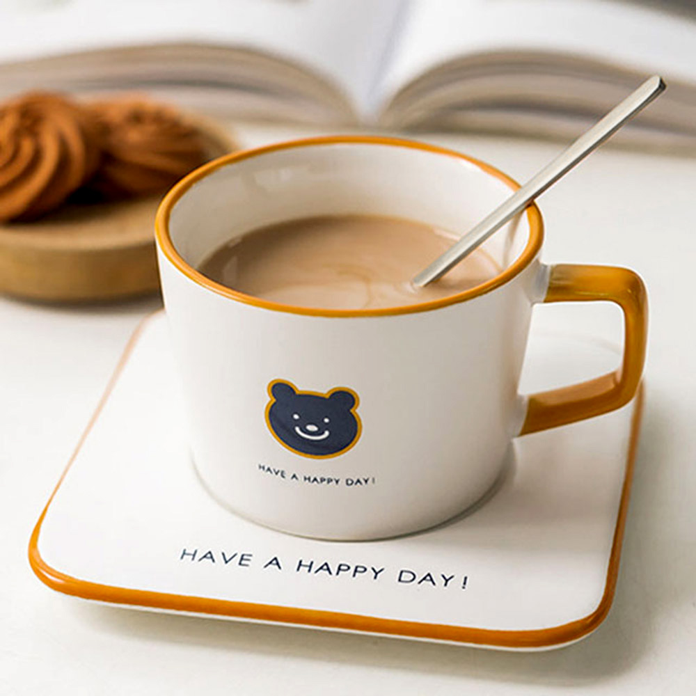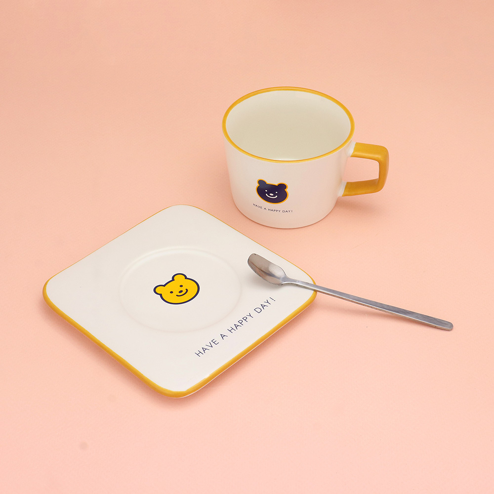 Have a Happy Day ! Message Cute Bear Ceramic Mug Cup and Saucer Set