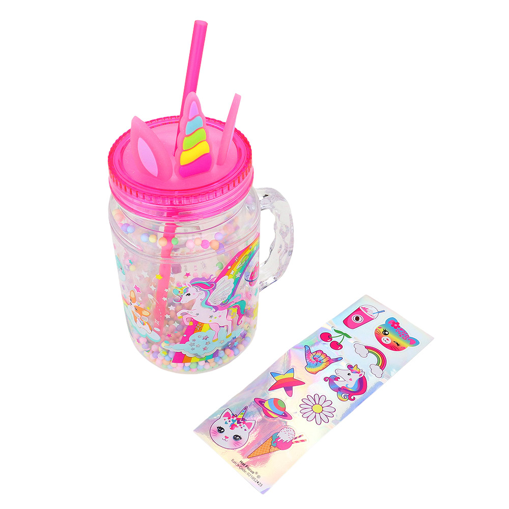 Details • Size : 5" X 6" (19.3fl.oz. / 570ml) • Straw Size : 9" L • 1 Vinyl Sticker Included • BPA Free • Do not microwave • Not intended for hot liquids • Clean water bottle with dish soap and warm water before use • Hand wash only