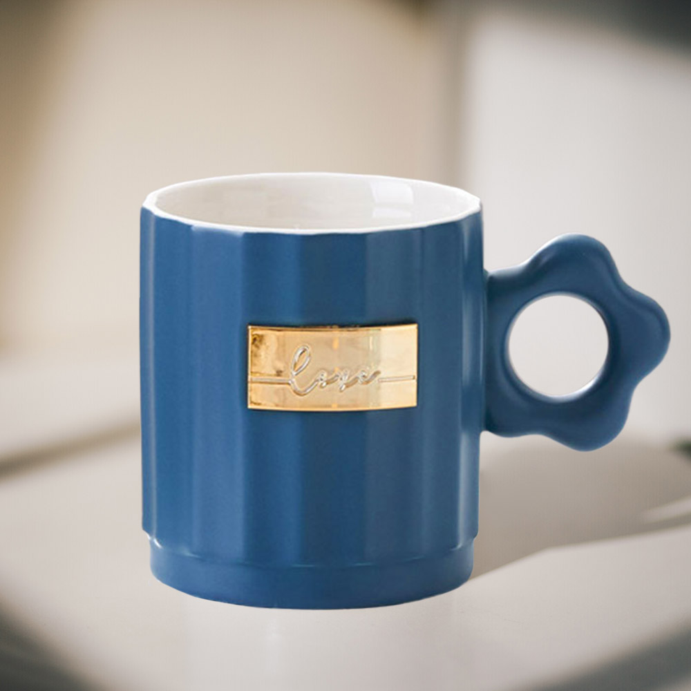 Love Message Colorful Flower Handle Ceramic Mug Cup