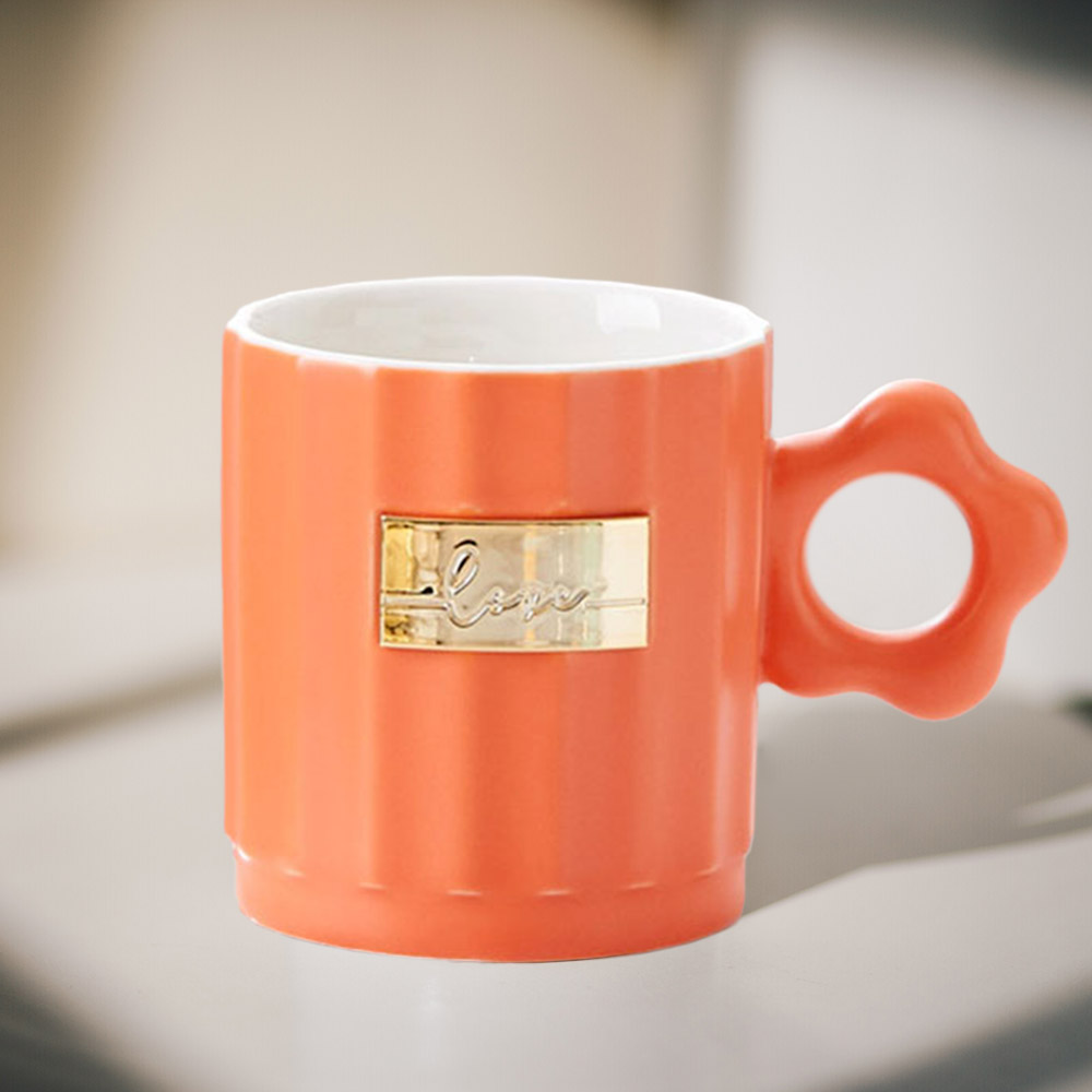 Love Message Colorful Flower Handle Ceramic Mug Cup