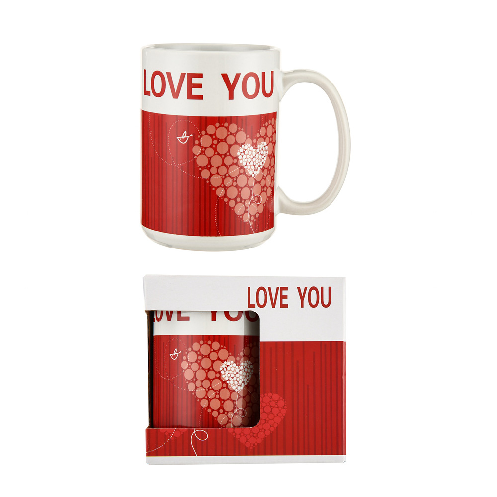 LOVE YOU Message Heart Print Valentine Mug Cup