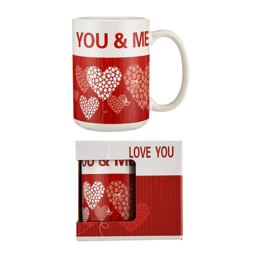 • Charming Valentine-themed coffee mug featuring a bold “You & Me” message and heart balloon design. Perfect for gifting, daily use, or seasonal dĂ©cor. A great way to add a touch of love to morning routines, office desks, or special occasions. Ideal for Valentine’s Day gifting.
