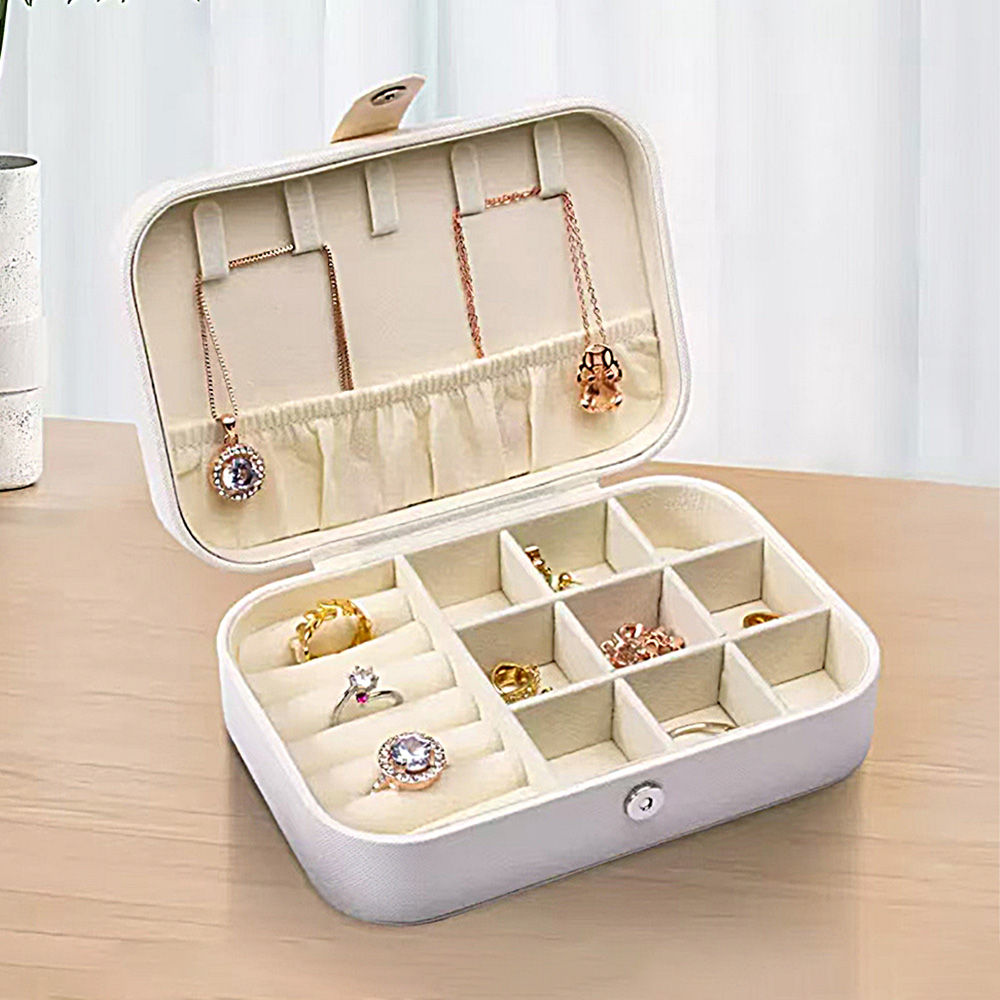 Details • Size : 6.3" X 4.33" X 1.97" • Button Snap Closure • Jewelry Box Only • Keep your jewelry organized and tangle-free with this portable storage box. Features multiple compartments for rings, earrings, and necklaces, perfect for travel or home use.