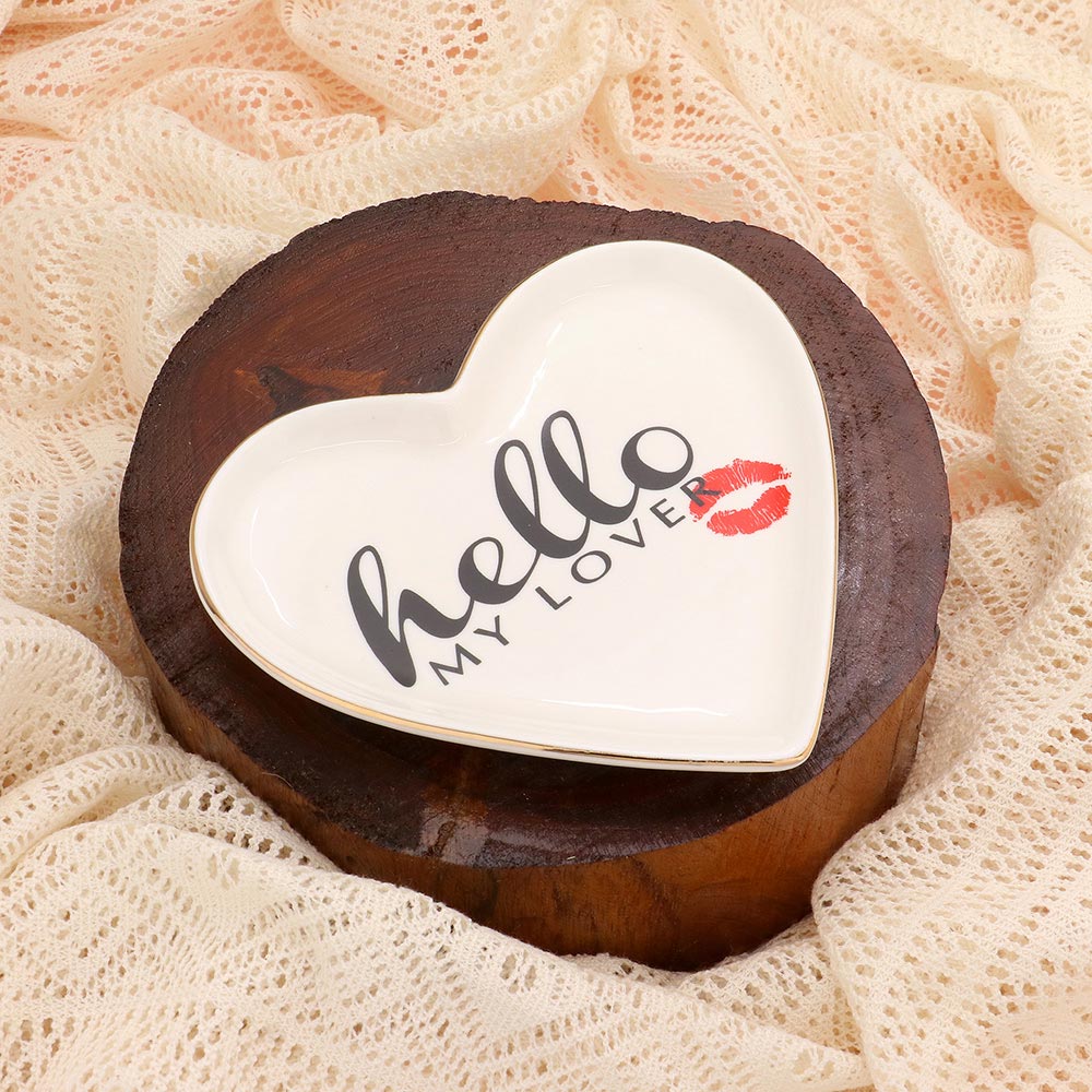 Hello My Lover Message Lips Mark Heart Jewelry Dish