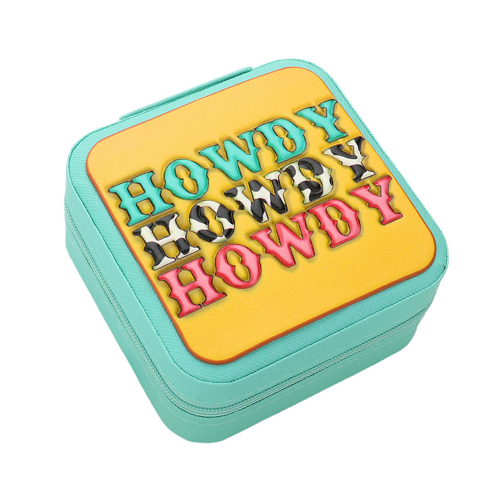 HOWDY Message Printed Faux Leather Portable Square Jewelry Box