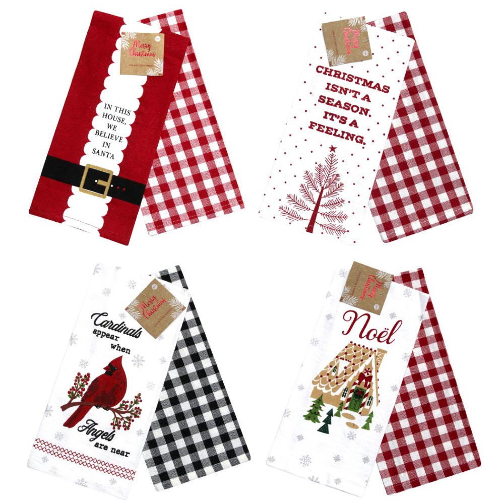 2PCS - Inspirational Christmas Message Gingham Kitchen Towel Set