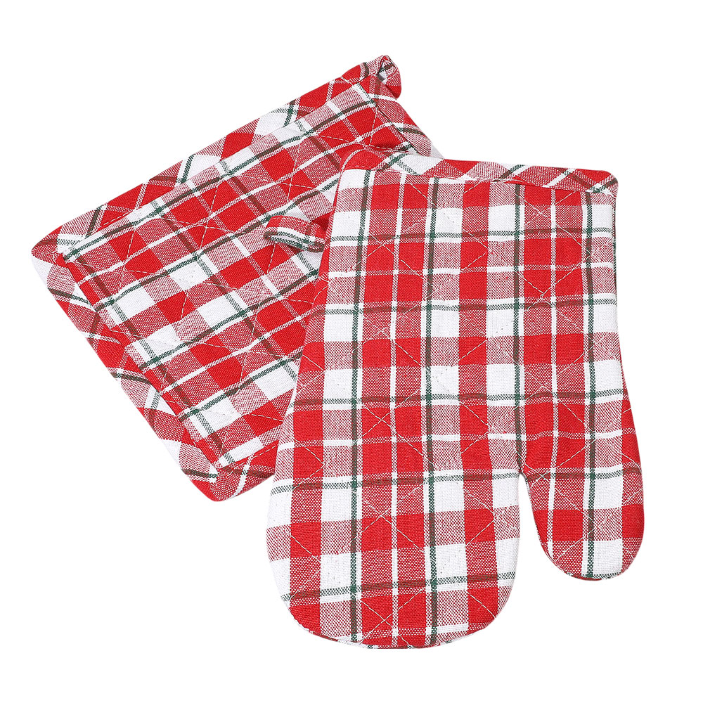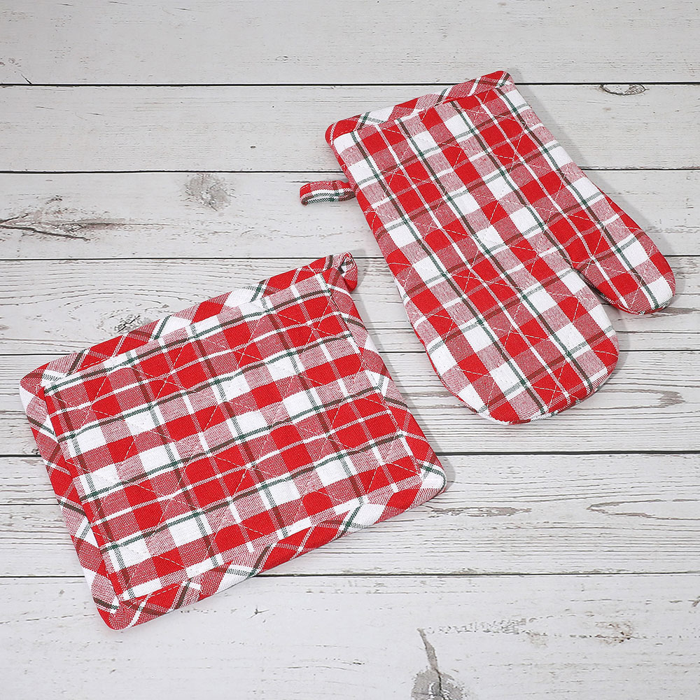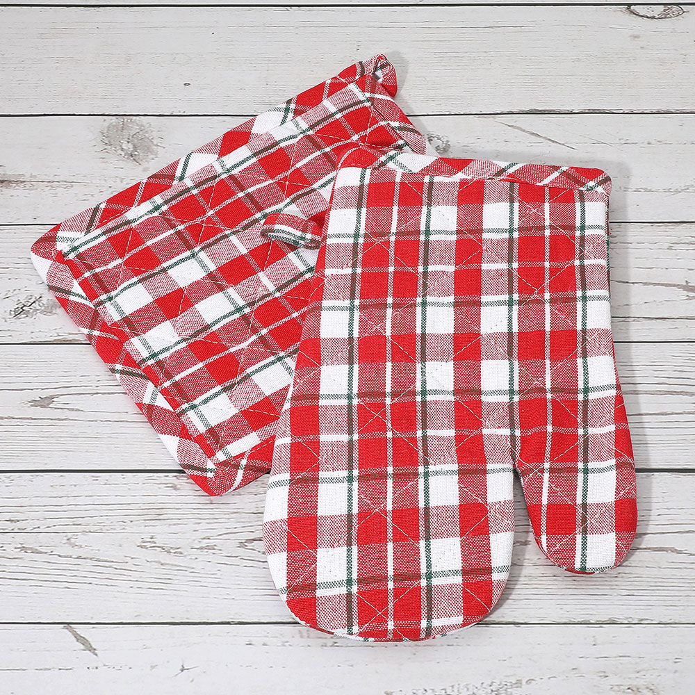 2PCS - Classic Checkered Pattern Quilted Oven Mitt Pot Holder Set