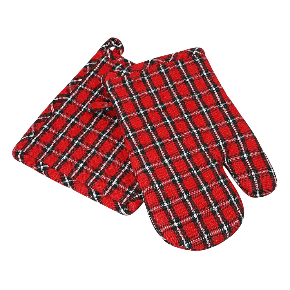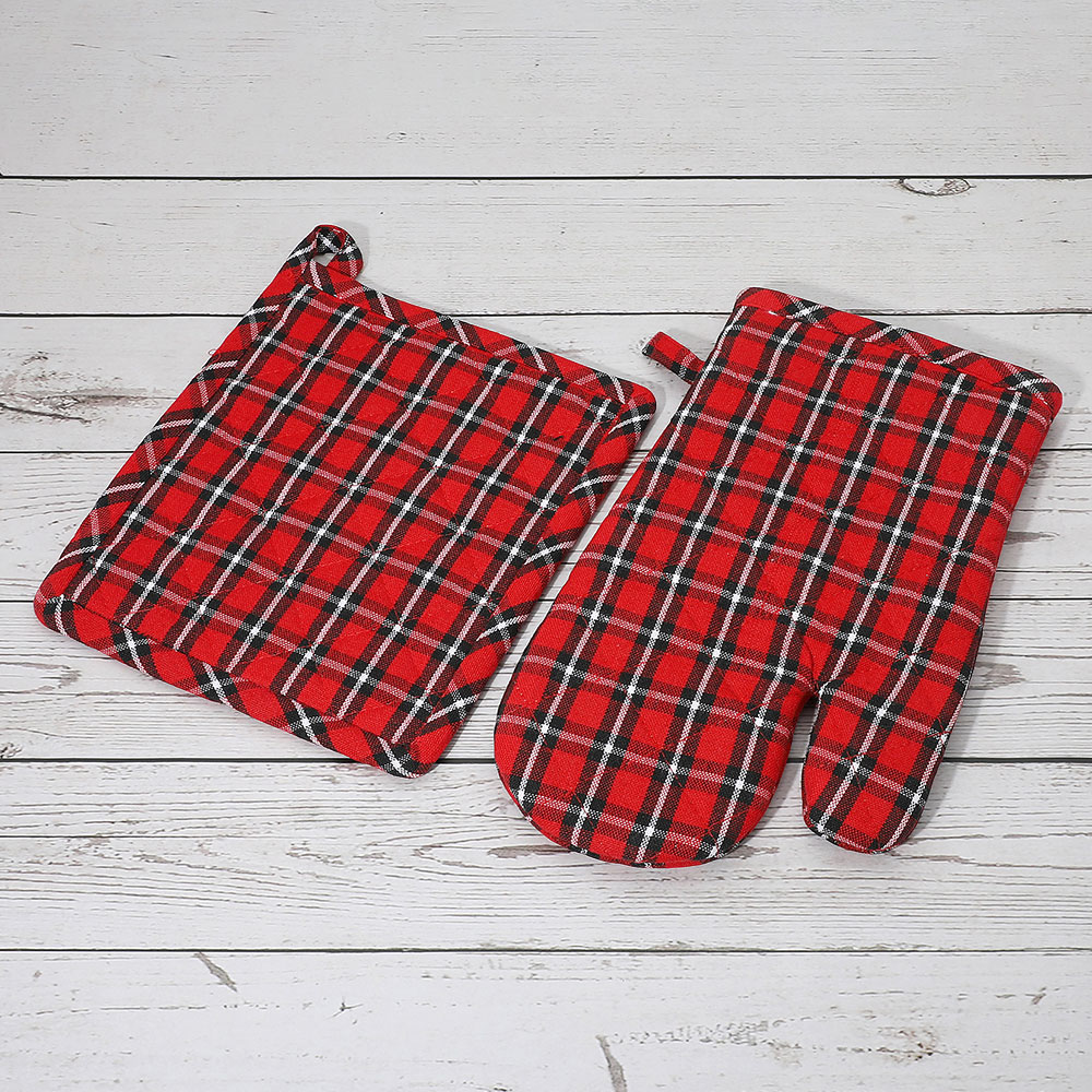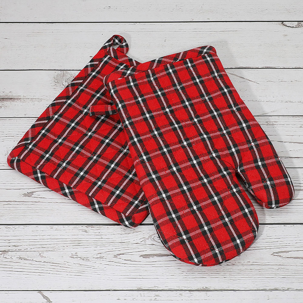 2PCS - Classic Checkered Pattern Quilted Oven Mitt Pot Holder Set