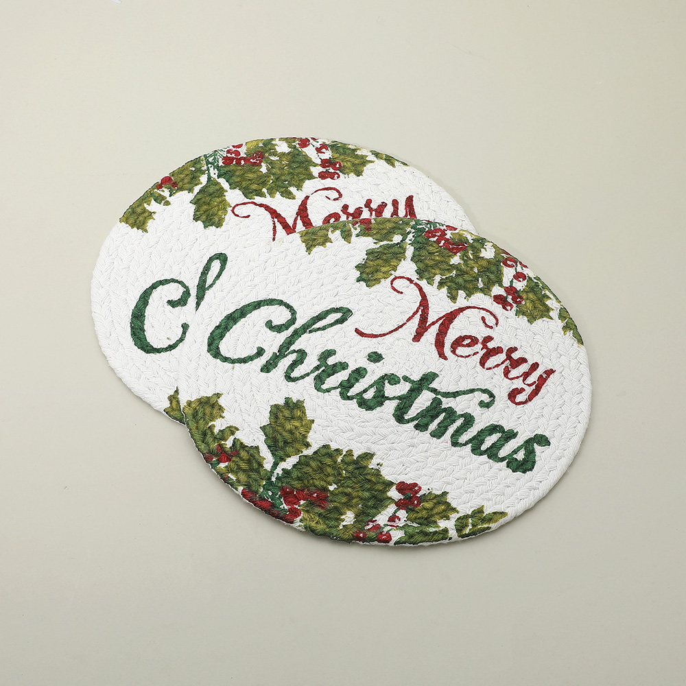 Details • Size : 9" X 9" • Material : 100% Cotton • Add festive charm to your holiday table with these round placemats featuring a “Merry Christmas” greeting and holly accents. Perfect for seasonal dining, parties, and entertaining, this set of 2 blends practicality with cheerful holiday style. • Made In India