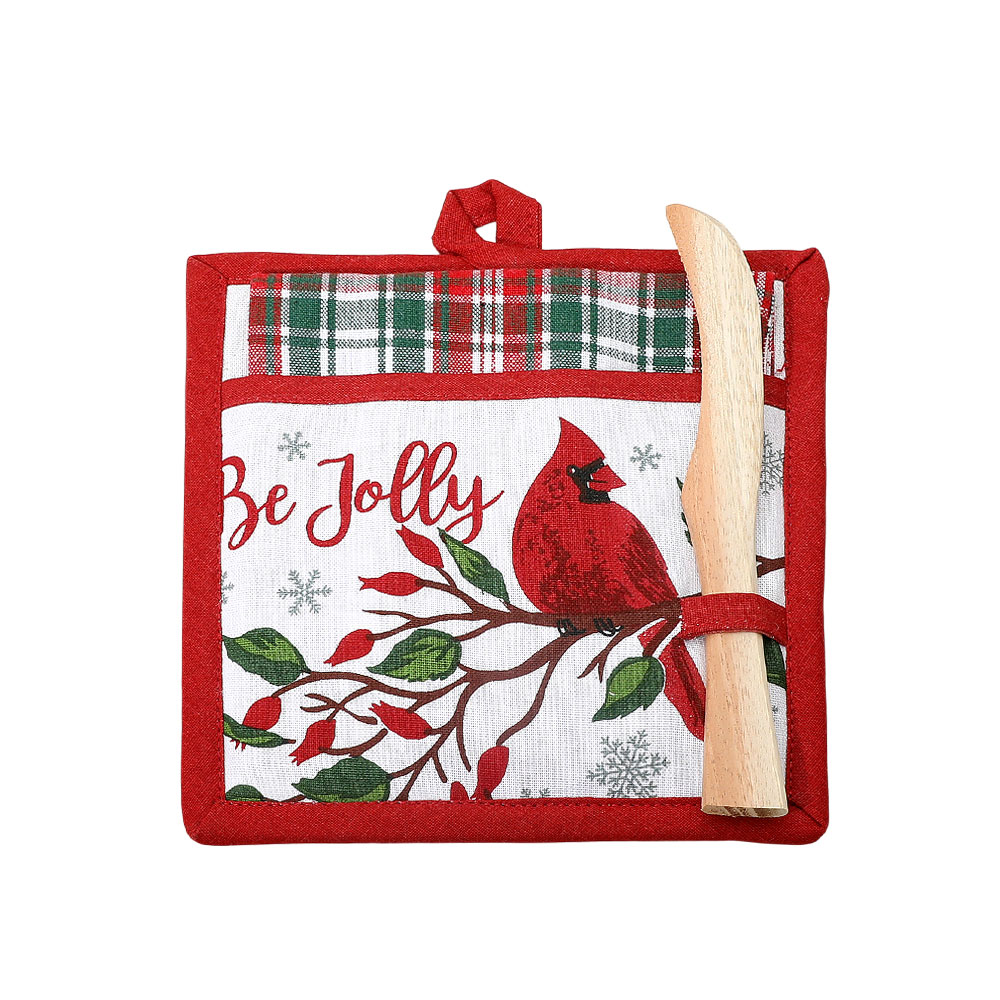 3PCS - Holiday Plaid Kitchen Towel BE JOLLY Message Cardinal Potholder Wooden Spreader Set 3PCS - Holiday Plaid Kitchen Towel BE JOLLY Message Cardinal Potholder Wooden Spreader Set 3PCS - Holiday Plaid Kitchen Towel BE JOLLY Message Cardinal Potholder Wooden Spreader Set