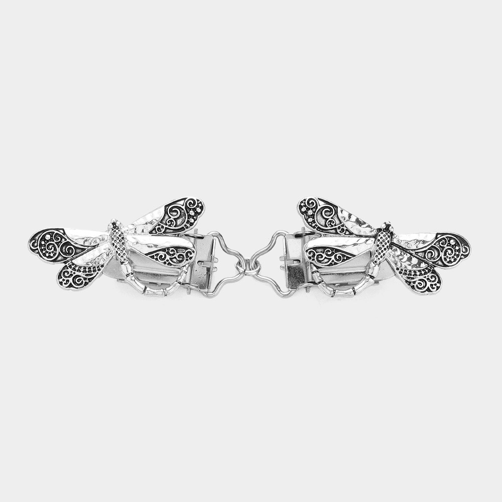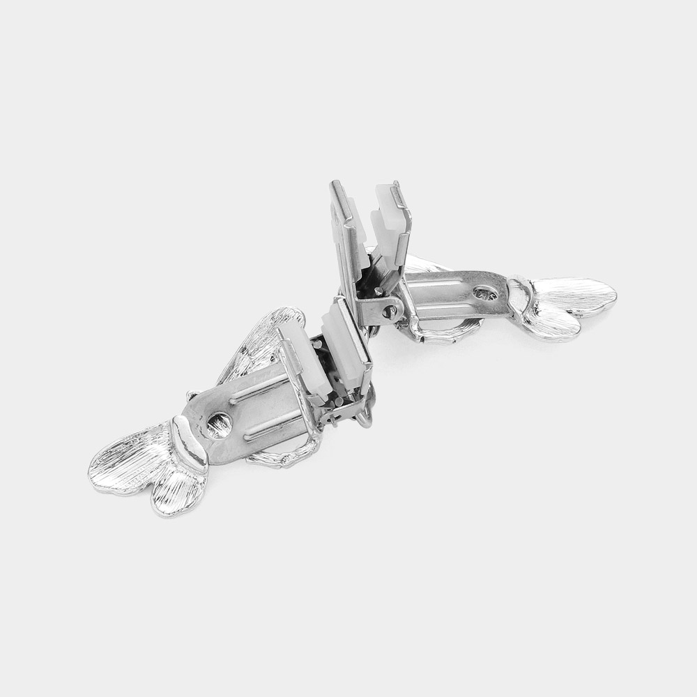 Stone Pointed Metal Dragonfly Dangle Earrings