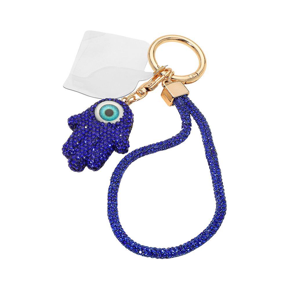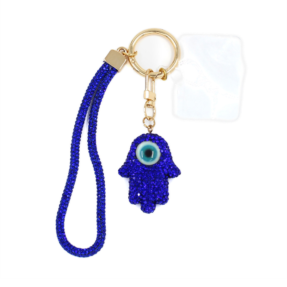 Bling Studded Evil Eye Hamsa Hand Charm Keychain Bag Charm Phone Holder