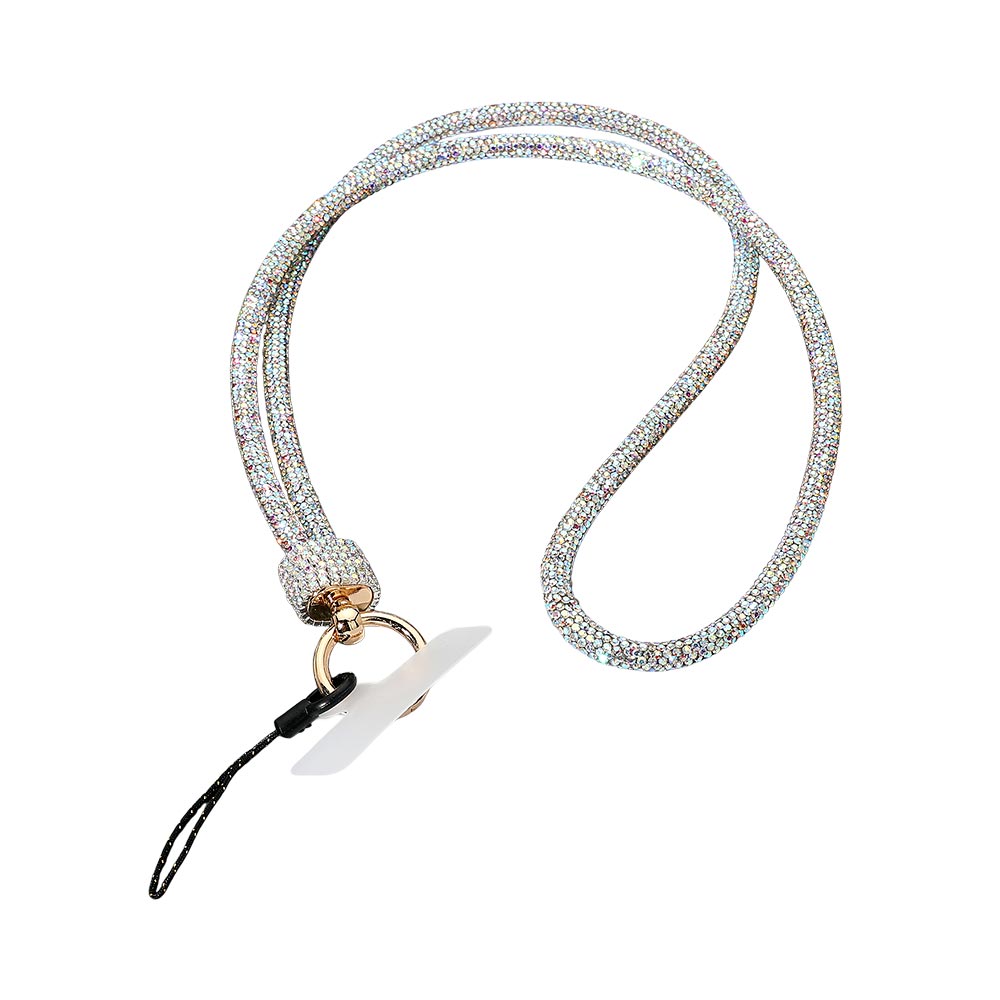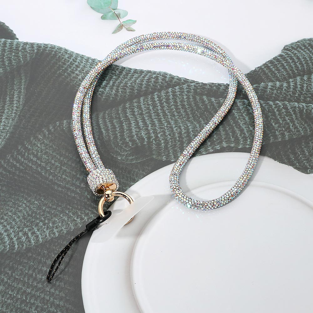 • Elegant crystal lanyard wrist strap featuring a sparkling design with a secure keyring and phone loop attachment. Perfect for carrying keys, ID cards, or small accessories while adding a touch of glamour and convenience to your everyday essentials.