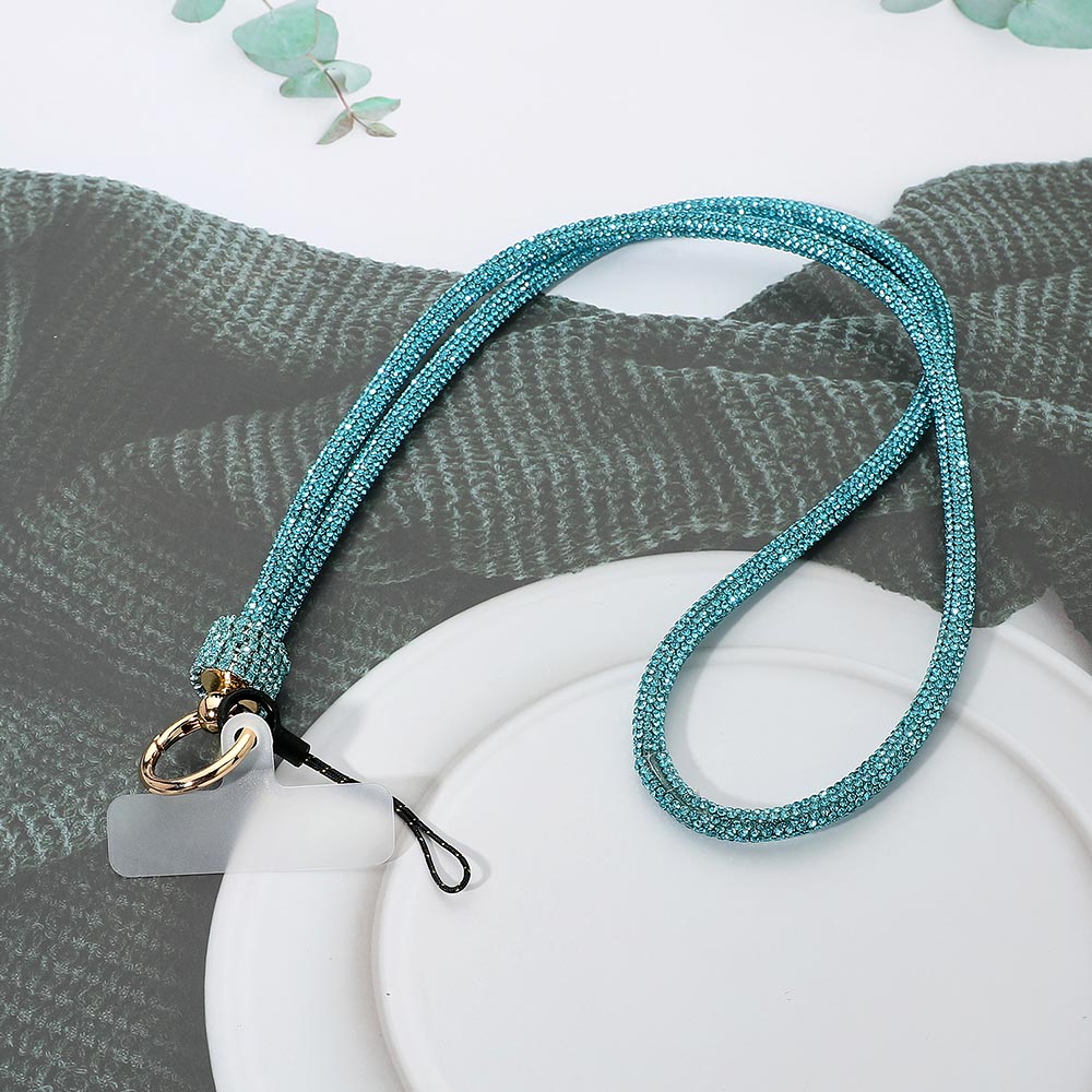 • Elegant crystal lanyard wrist strap featuring a sparkling design with a secure keyring and phone loop attachment. Perfect for carrying keys, ID cards, or small accessories while adding a touch of glamour and convenience to your everyday essentials.