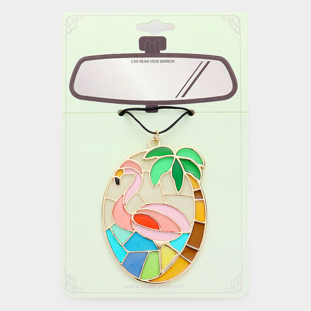 Colorful Flamingo Palm Tree Car Rear View Mirror Hanging Accessory