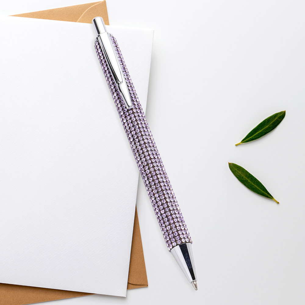 • Sparkling rhinestone ballpoint pen with a twist-action design and metallic accents. A fun, eye-catching addition to your desk, perfect for gifting or everyday writing.