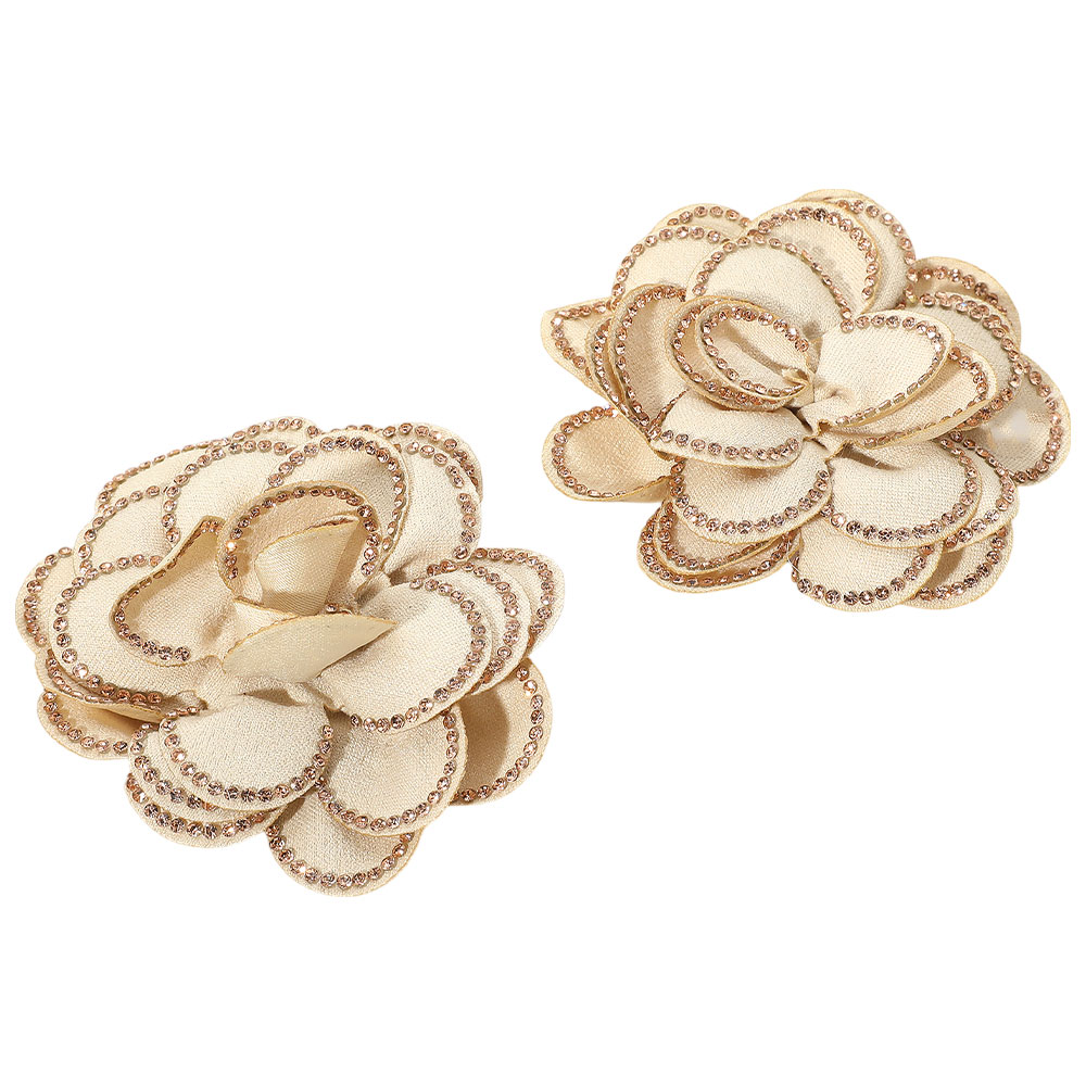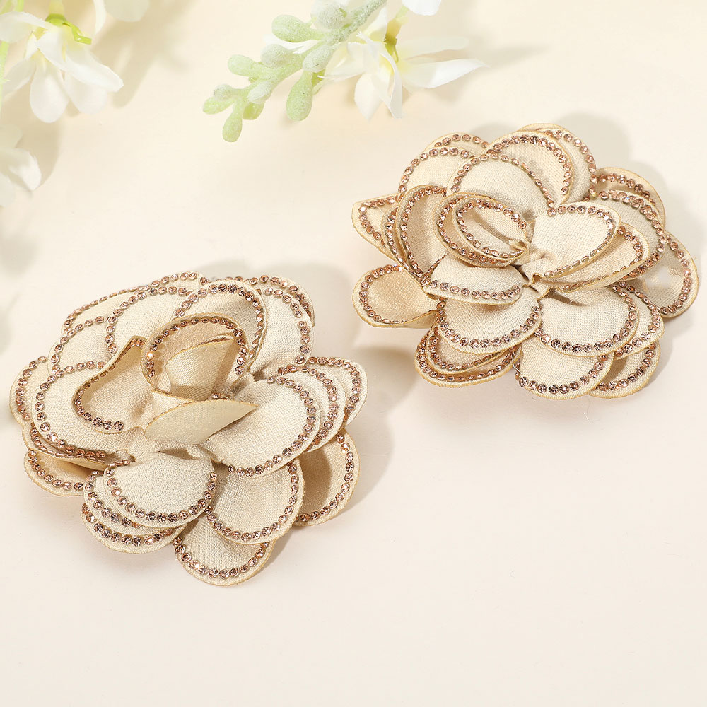 Elegant Rhinestone Rim Fabric Flower Clip On Accessory