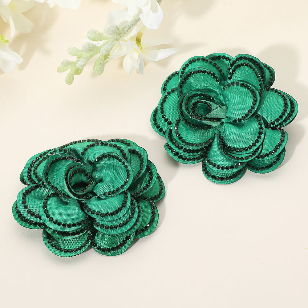 Elegant Rhinestone Rim Fabric Flower Clip On Accessory