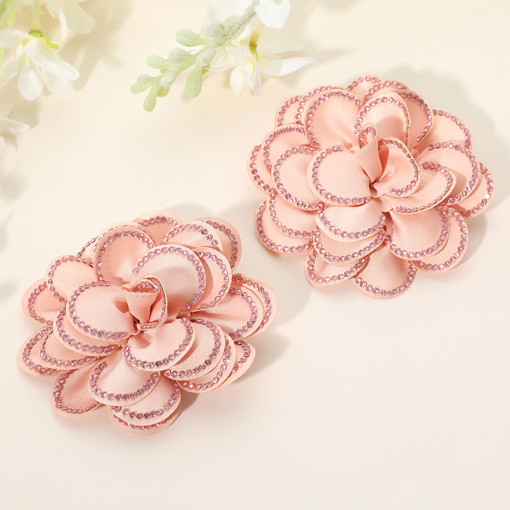 Elegant Rhinestone Rim Fabric Flower Clip On Accessory