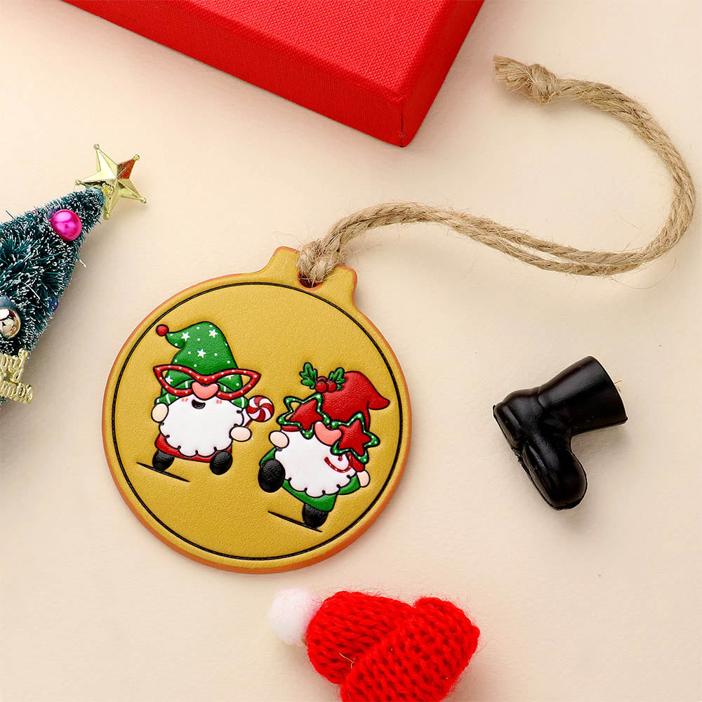 Faux Leather Embossed Christmas Tree Gifts Round Christmas Tree Ornament