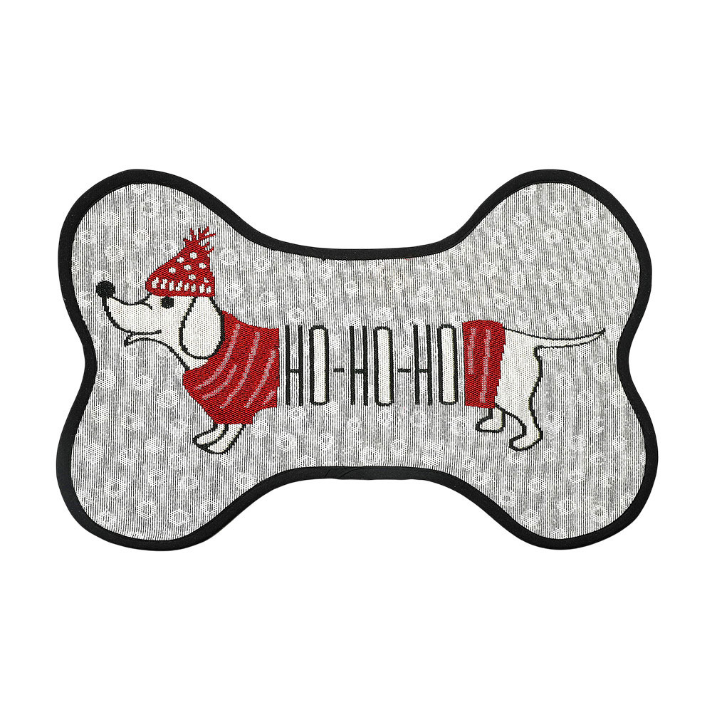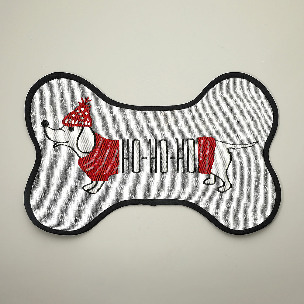 Details • Size : 19" X 13" • Material : 60% Cotton, 40% Polyester • Bring holiday cheer to your pet’s feeding station with this festive bone-shaped bowl mat featuring a playful dog in winter attire and “Ho-Ho-Ho” text. Perfect for keeping floors clean, reducing spills, and adding seasonal charm to your pet’s daily routine. • Made In India