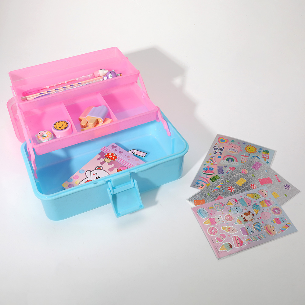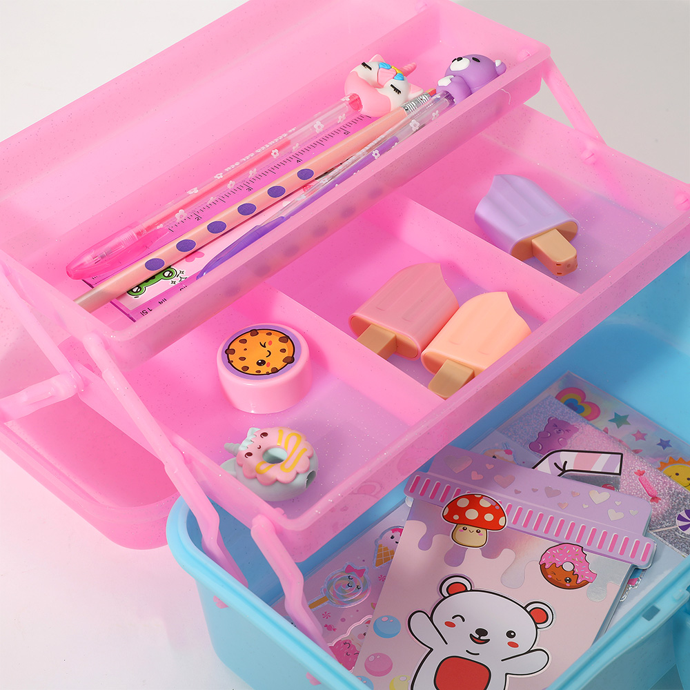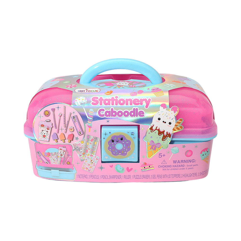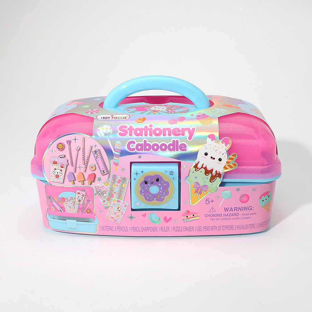 • 1 Notepad, 2 Pencils, 1 Pencil Sharpener, 1 Ruler, 1 Puzzle Eraser, 2 Gel Pens with 3D Topper, 3 Highlighters and 3 Sheets of Stickers Included