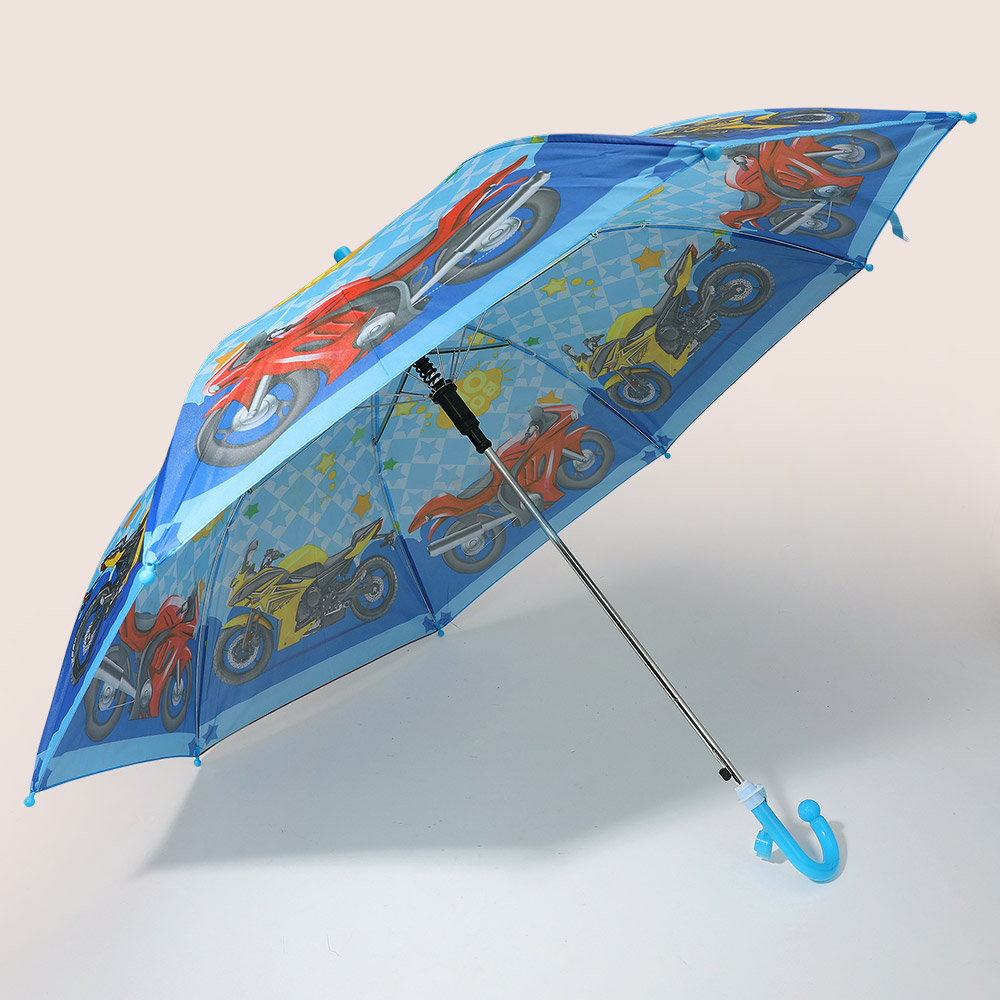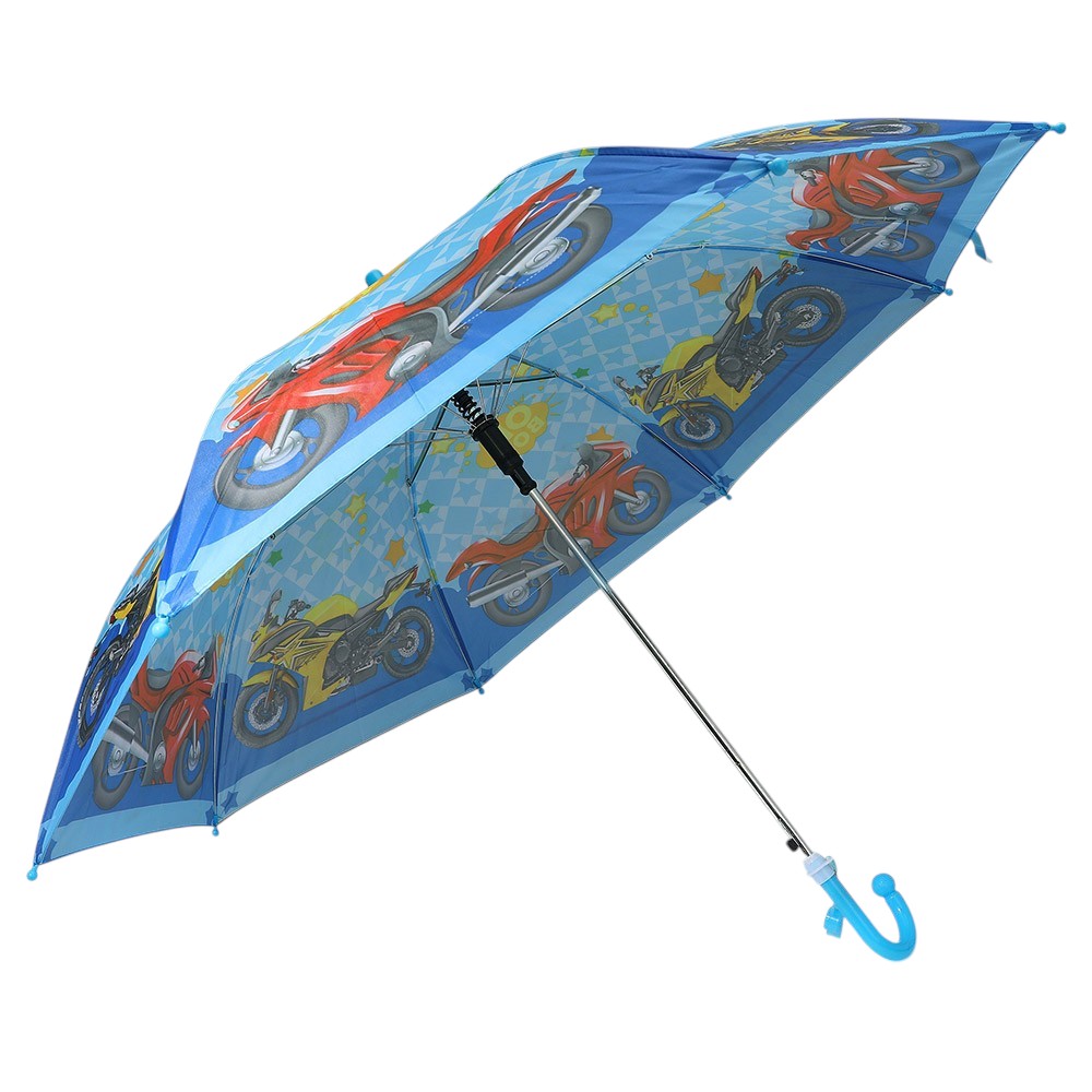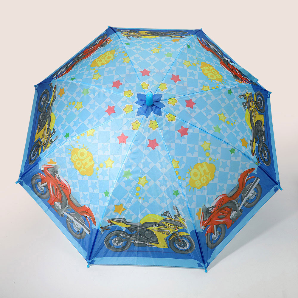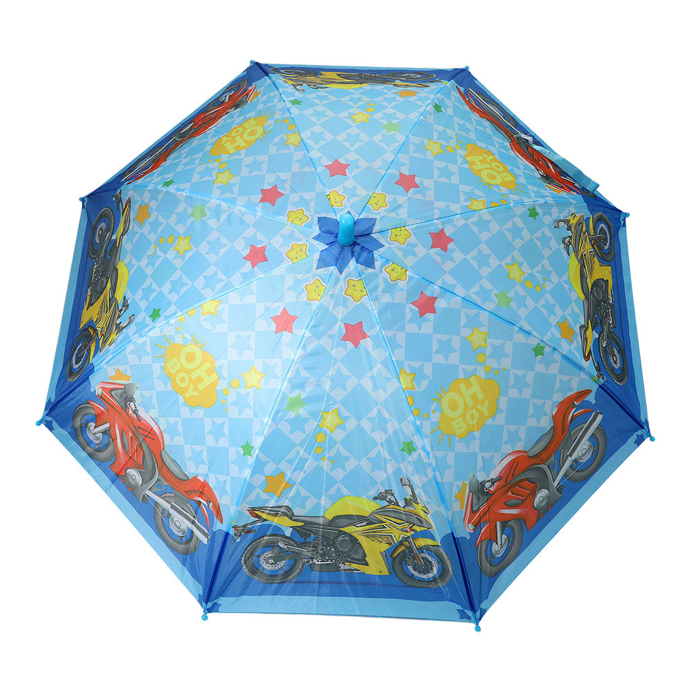Details • Size : 26" L • This kids' umbrella features an exciting motorcycle design with vibrant stars and playful “Oh Boy” text, making rainy days more fun. The sturdy, lightweight frame and wide canopy ensure great coverage and easy use, ideal for young riders and adventurers alike.