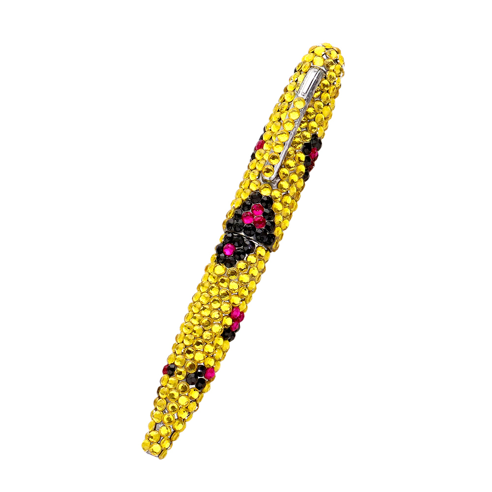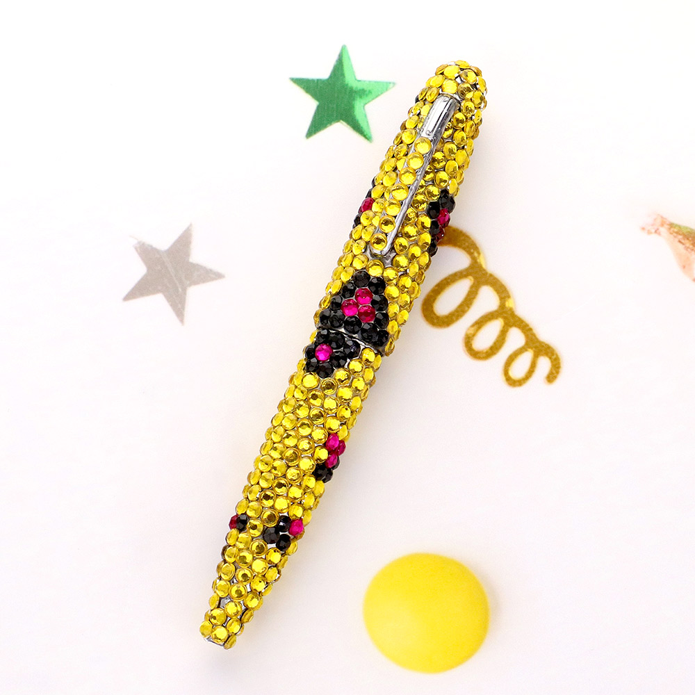 • Glamorous ballpoint pen covered in rhinestones with a bold animal print pattern. Ideal for stylish writing, gifting, or desk decor. Smooth ink flow and comfortable grip.