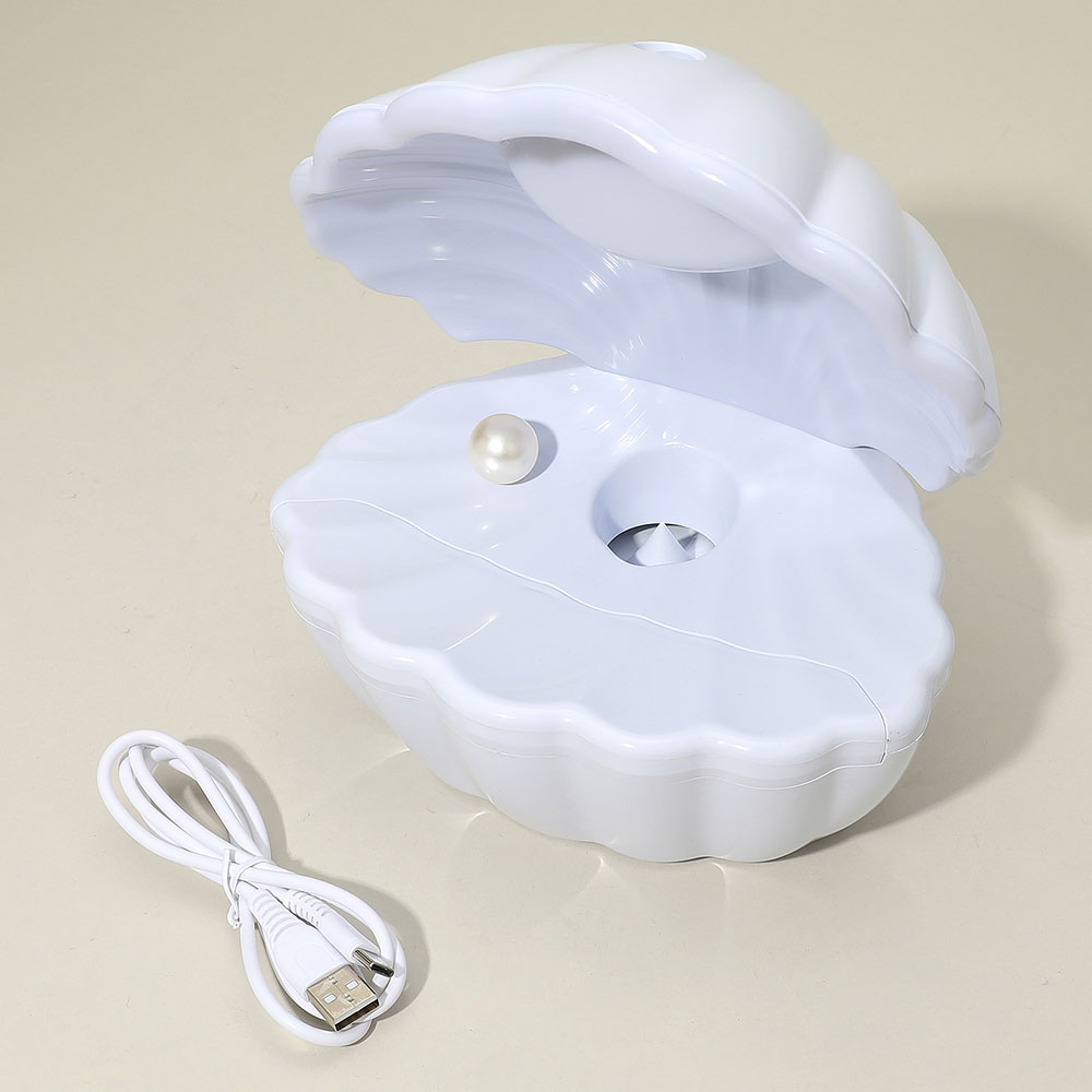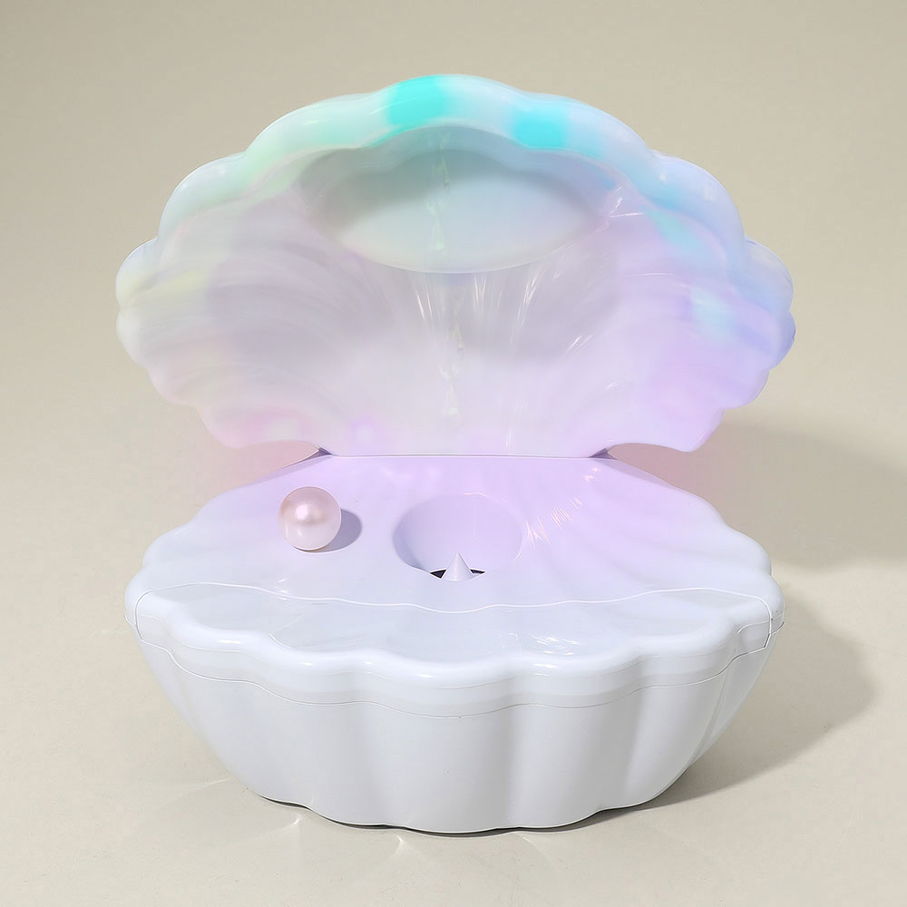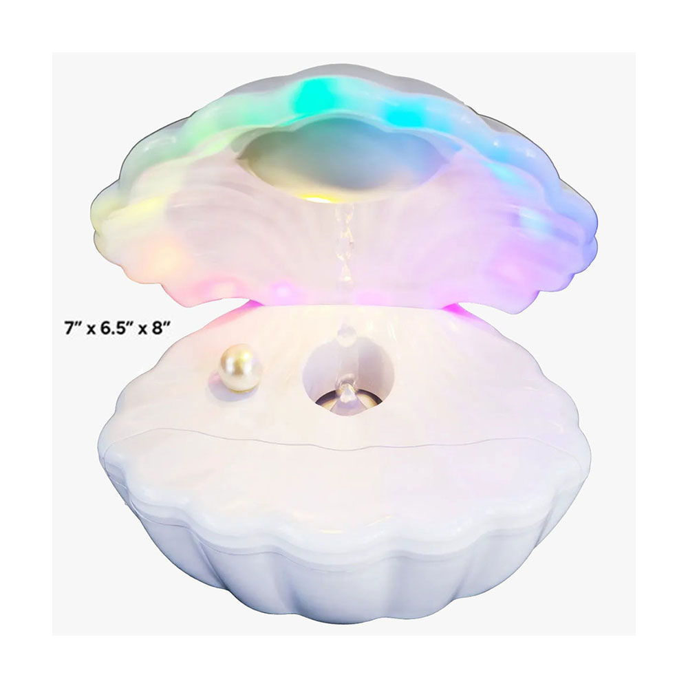 Details • Size : 7" X 7" X 6.5" • Colorful ambiance lights • Antigravity water drop • Simple modeling • Bluetooth speaker • Fine spray • Patented product • One USB charging cable included • Charming clam shell decor with light-up feature and pearl accent, perfect as a night light or tabletop centerpiece. Creates a dreamy ambiance in bedrooms or living spaces. Ideal for gifting or themed events, adding whimsical ocean-inspired charm to any setting. Battery operated and portable.