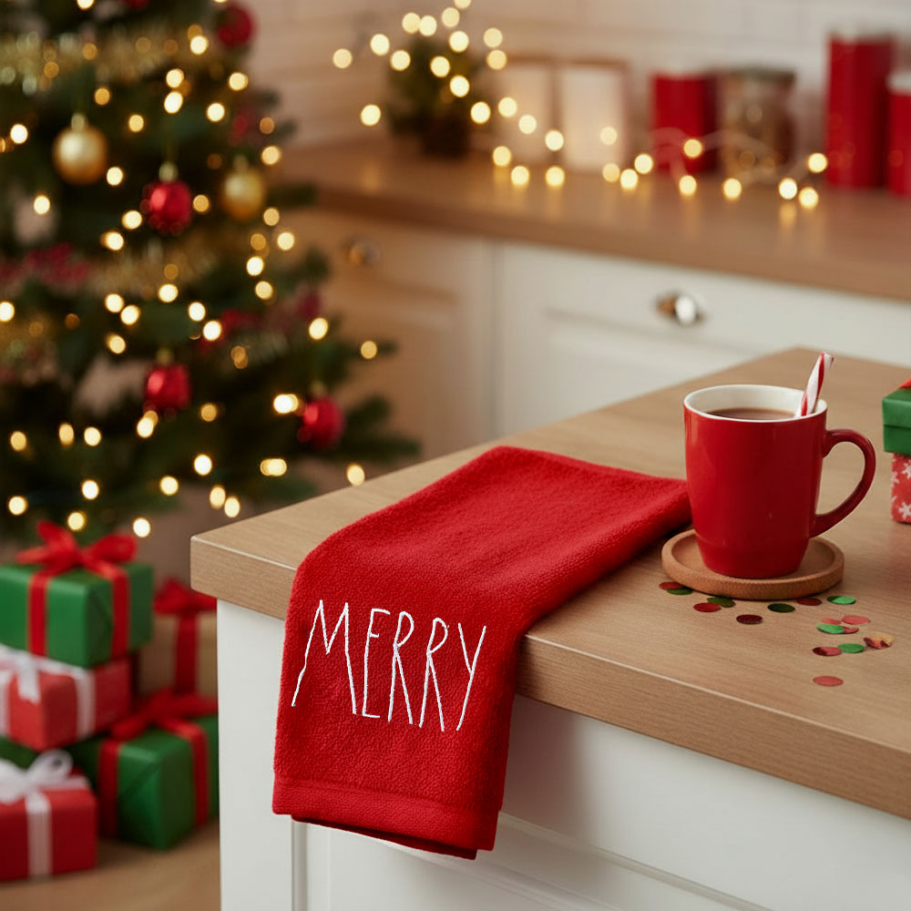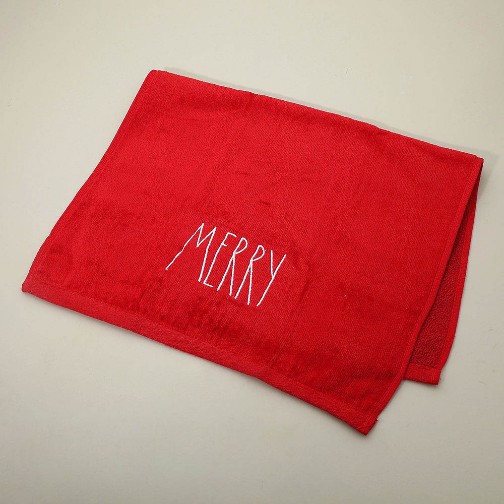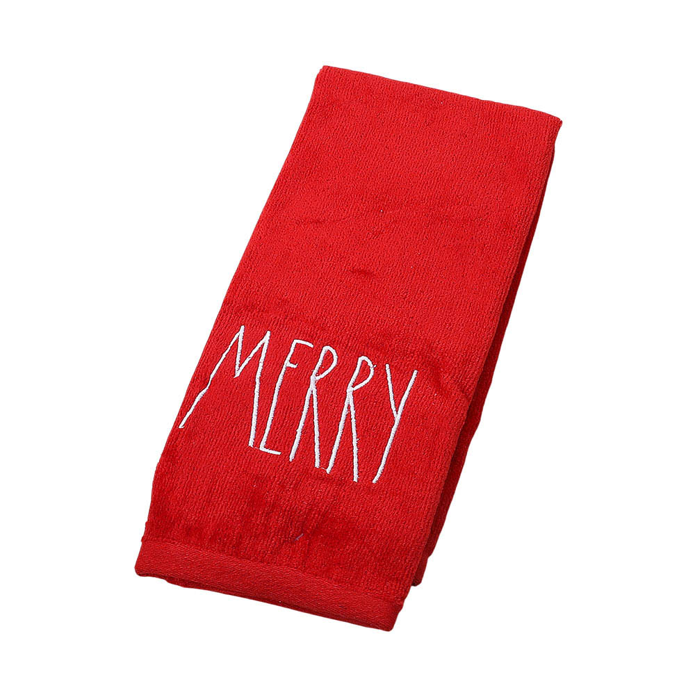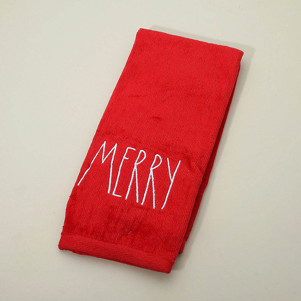 MERRY Message Embroidered Festive Holiday Hand Towel