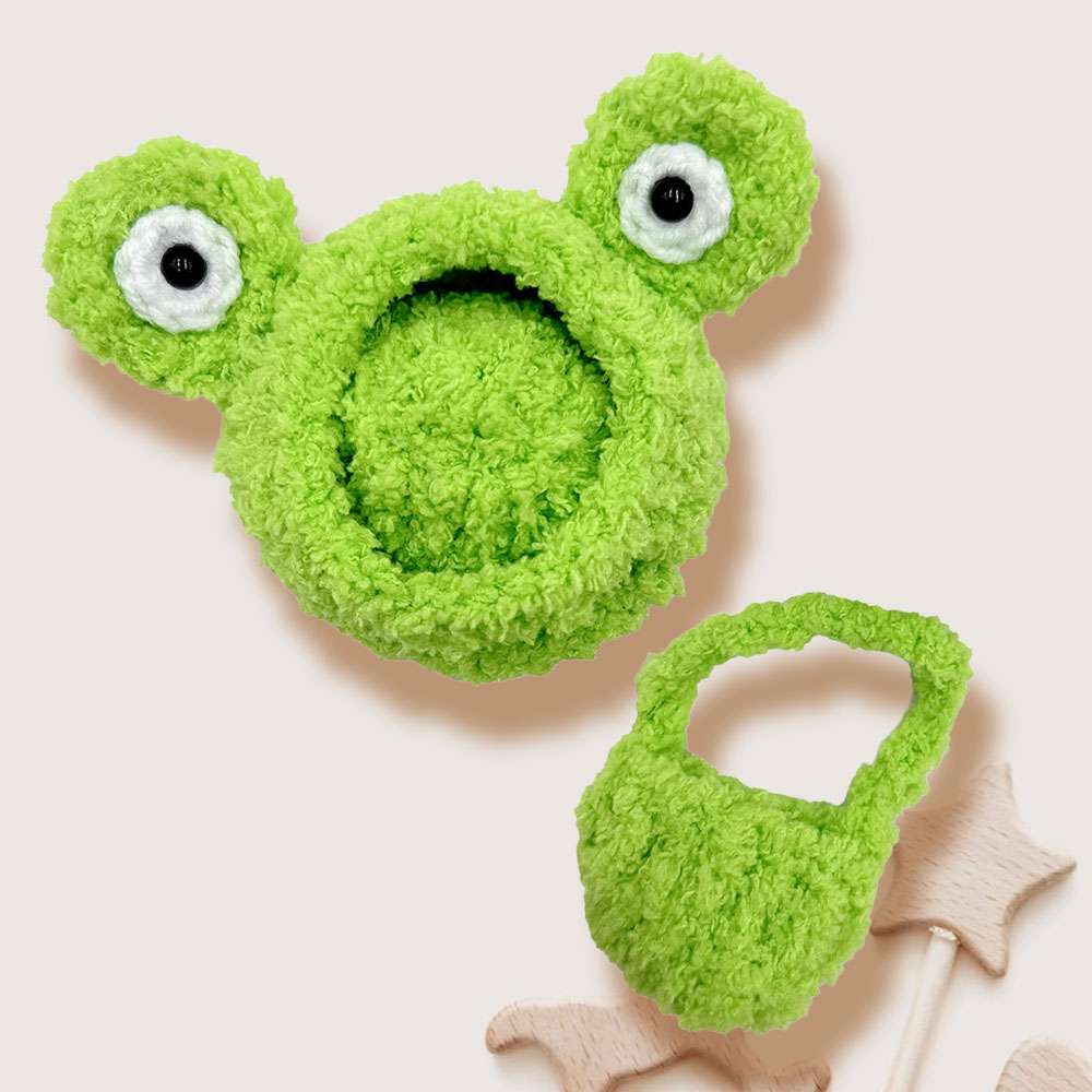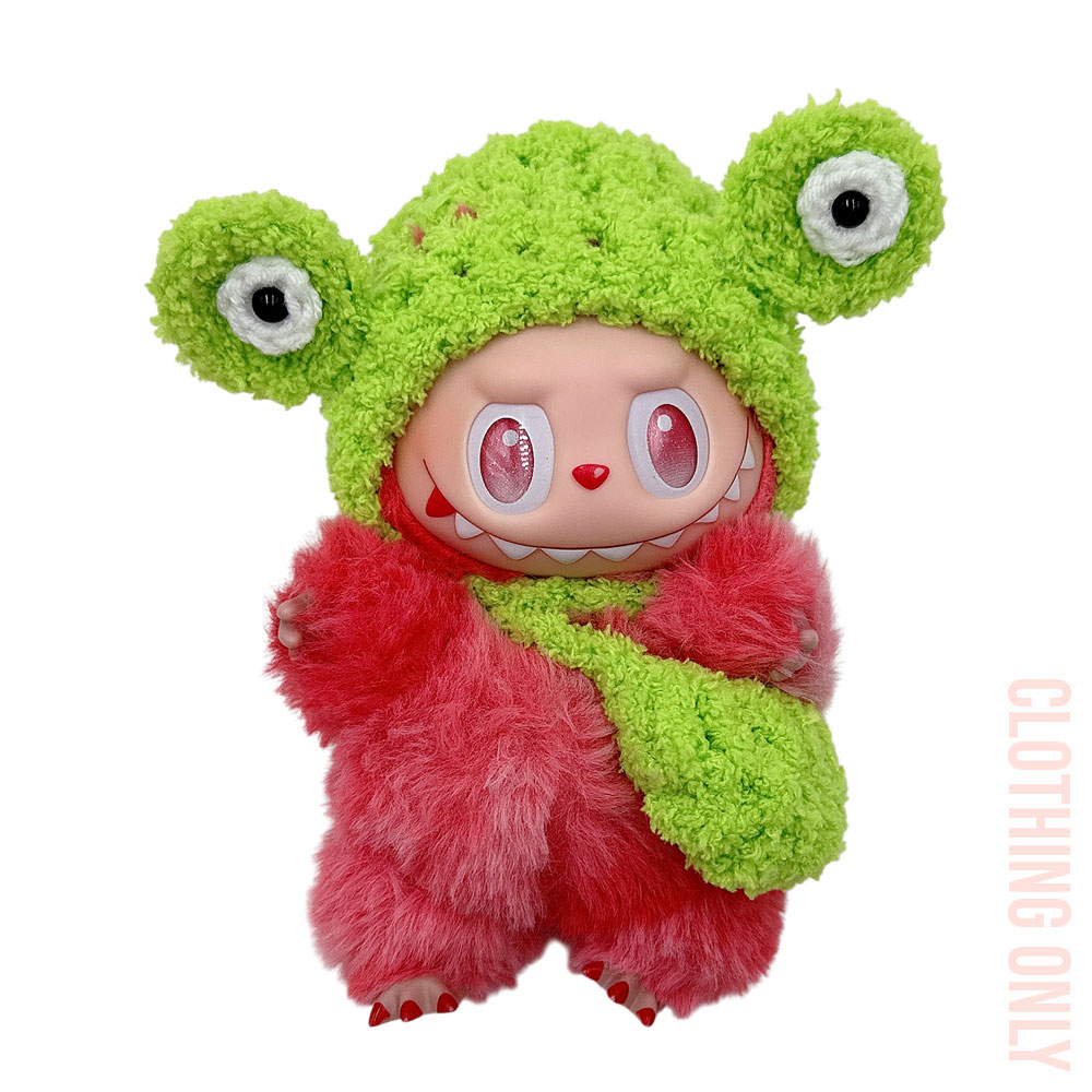 Details • Size : One Size • Labubu Doll Compatible • Doll NOT Included • Bring adorable personality to your doll’s look with this frog-themed outfit set. Featuring a plush hat with playful eyes and a matching fuzzy bag, it's perfect for imaginative, fun-filled dress-up moments.