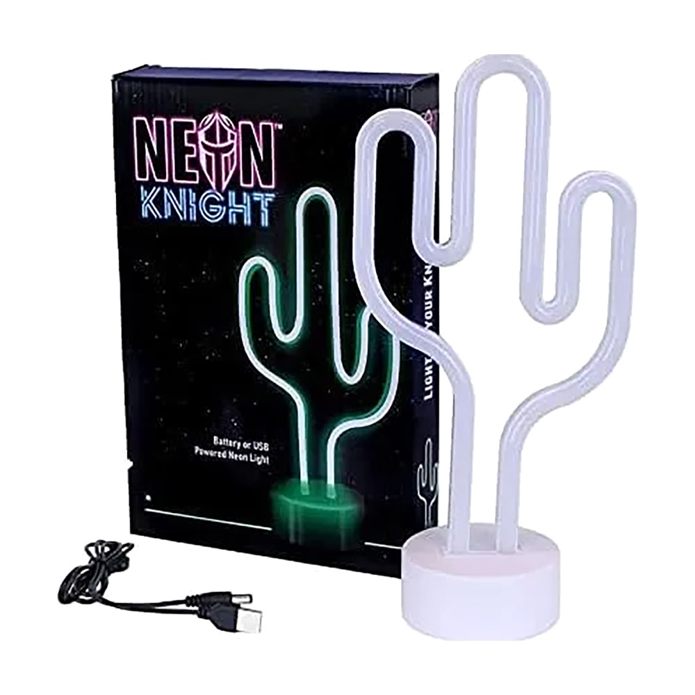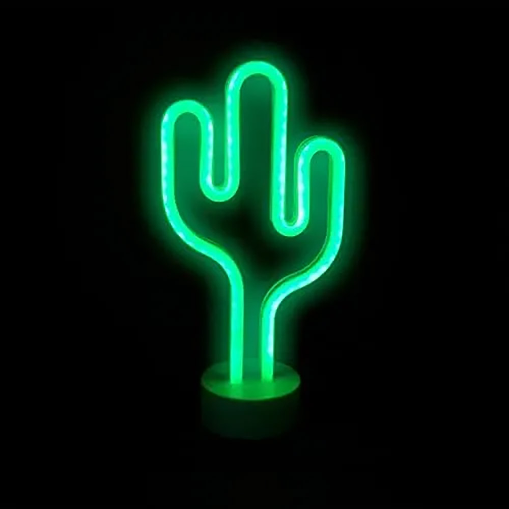 Details • Size : 6" X 1.2" • Eye-catching cactus shape • Bright green neon light featuring 95 LEDs • Makes for a great decoration • Operates using battery or USB – 2 AA batteries are included • Includes 35-inch USB cable and display stand • This LED wall decor is perfect for any dorm room/bedroom. The cactus lamp gives off a bright, green glow with the help of 95 LED lights. Hang the light as a sign or setup next to your other decorations with the display stand included. The light can be battery operated or powered by the 35-inch USB cable included. Light the night with this cool, neon cactus!