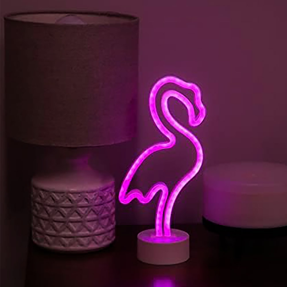 Details • Size : 6" X 1.2" • Eye-catching Flamingo shape • Bright green neon light featuring 95 LEDs • Makes for a great decoration • Operates using battery or USB – 2 AA batteries are included • Includes 35-inch USB cable and display stand • Great for beach party decoration or college dorm room light • This pink light up sign has a unique flamingo shaped that can provide a warm atmosphere for your room. You can place it in your dressing table or girls room. The pink flamingo night light features a soft warm glow and adds a splash of neon color to brighten a dark room or to replace a boring desk lamp or night light.