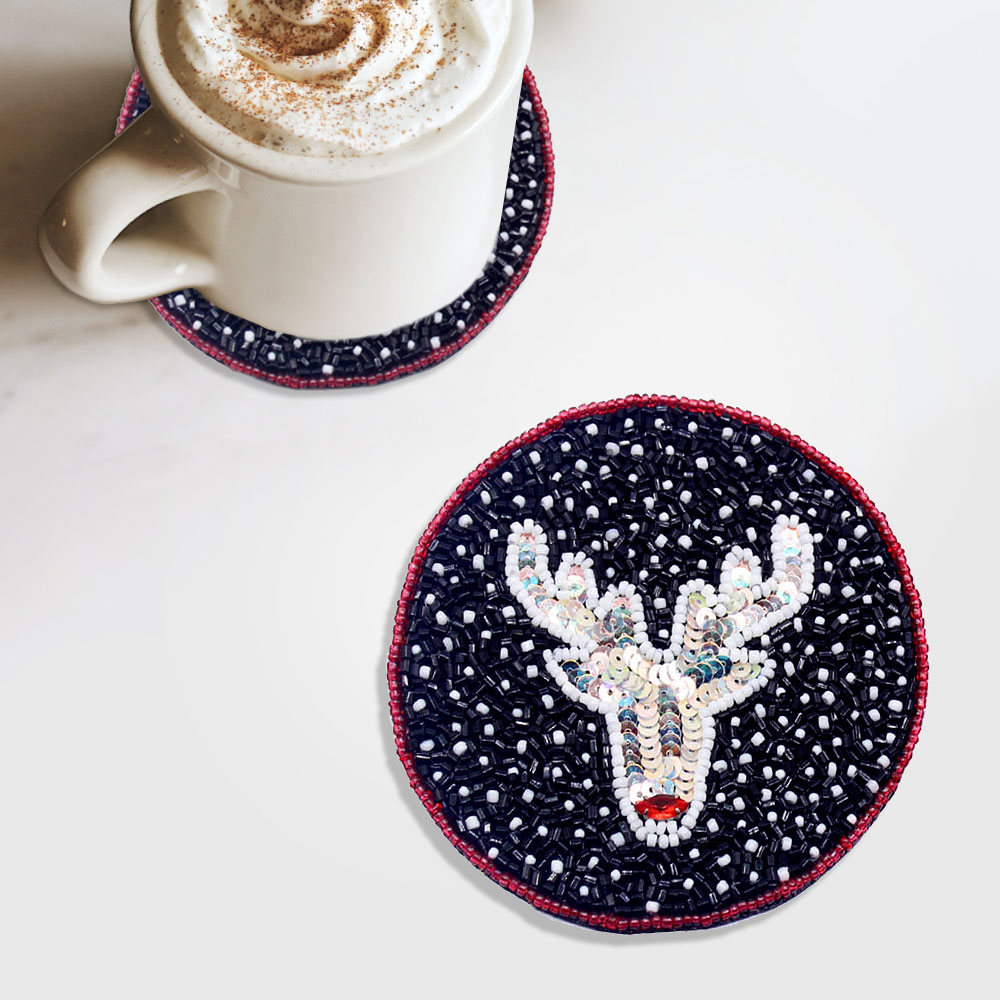 Merry Xmas Message Felt Back Seed Beaded Rudolph Heart Dangle Earrings