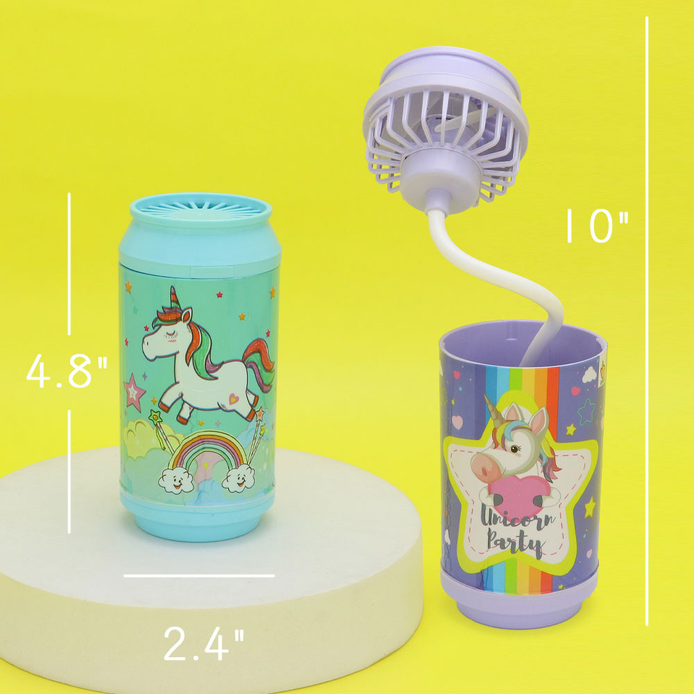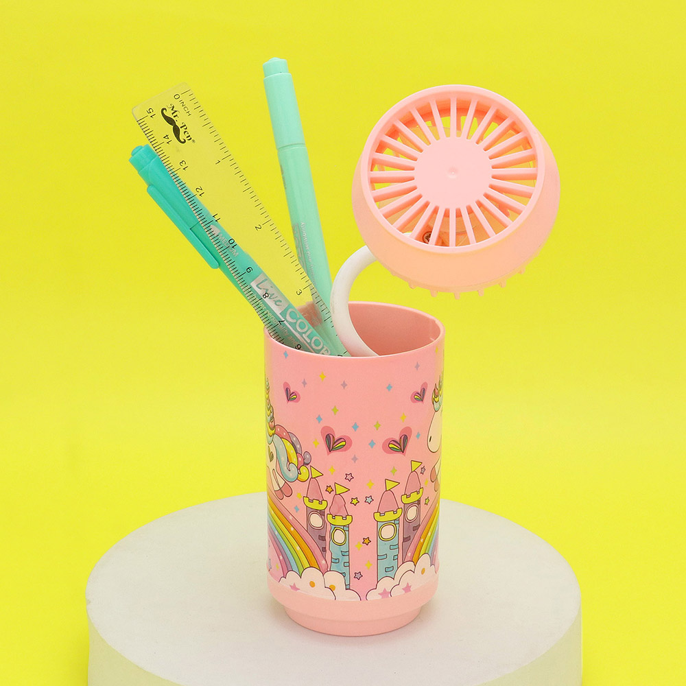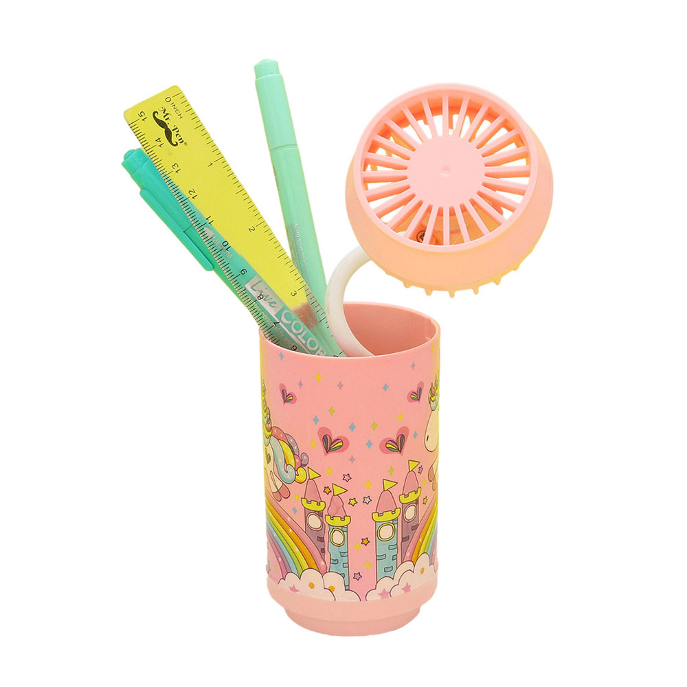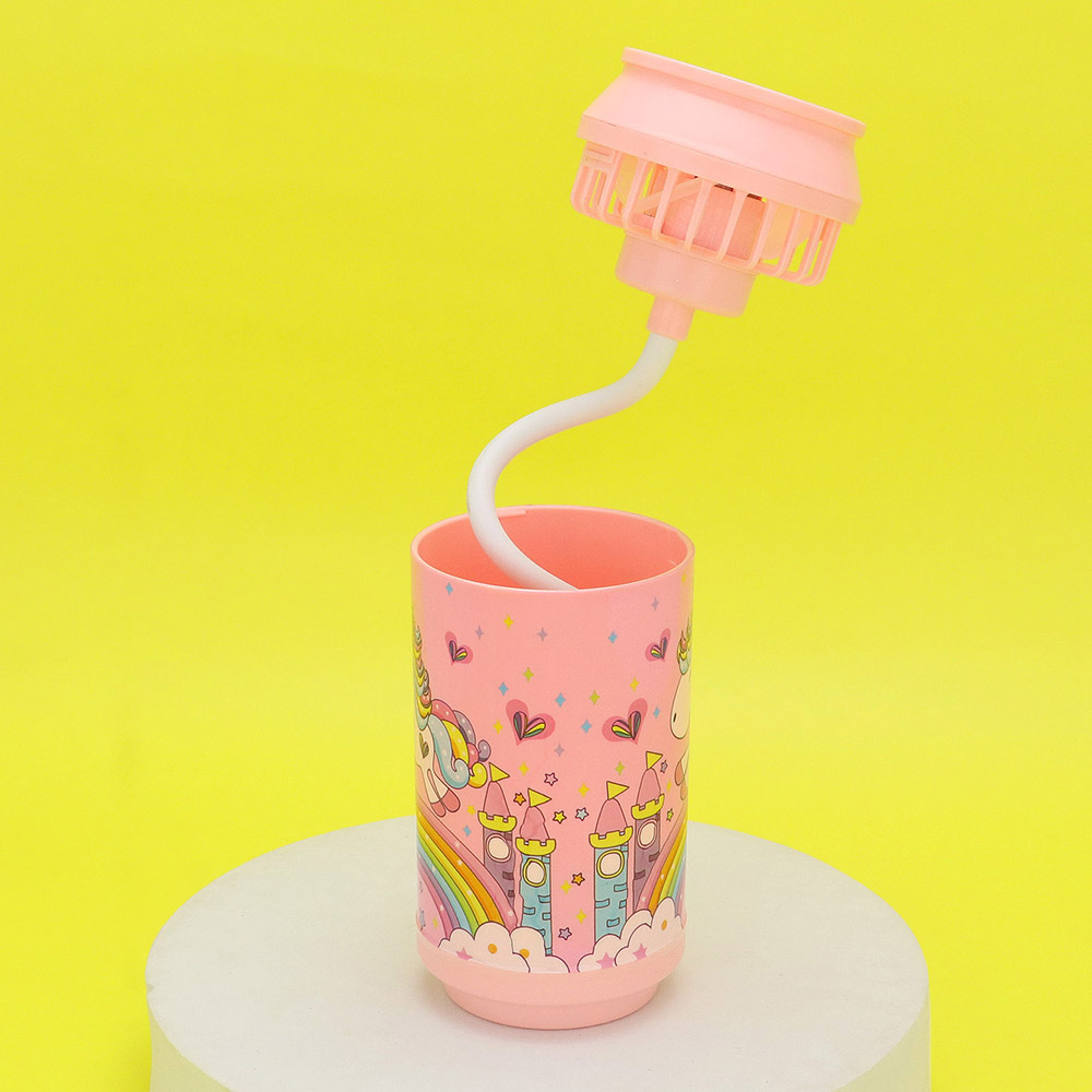 Unicorn Printed Portable Pen Holder Table Fan USB CHARGE