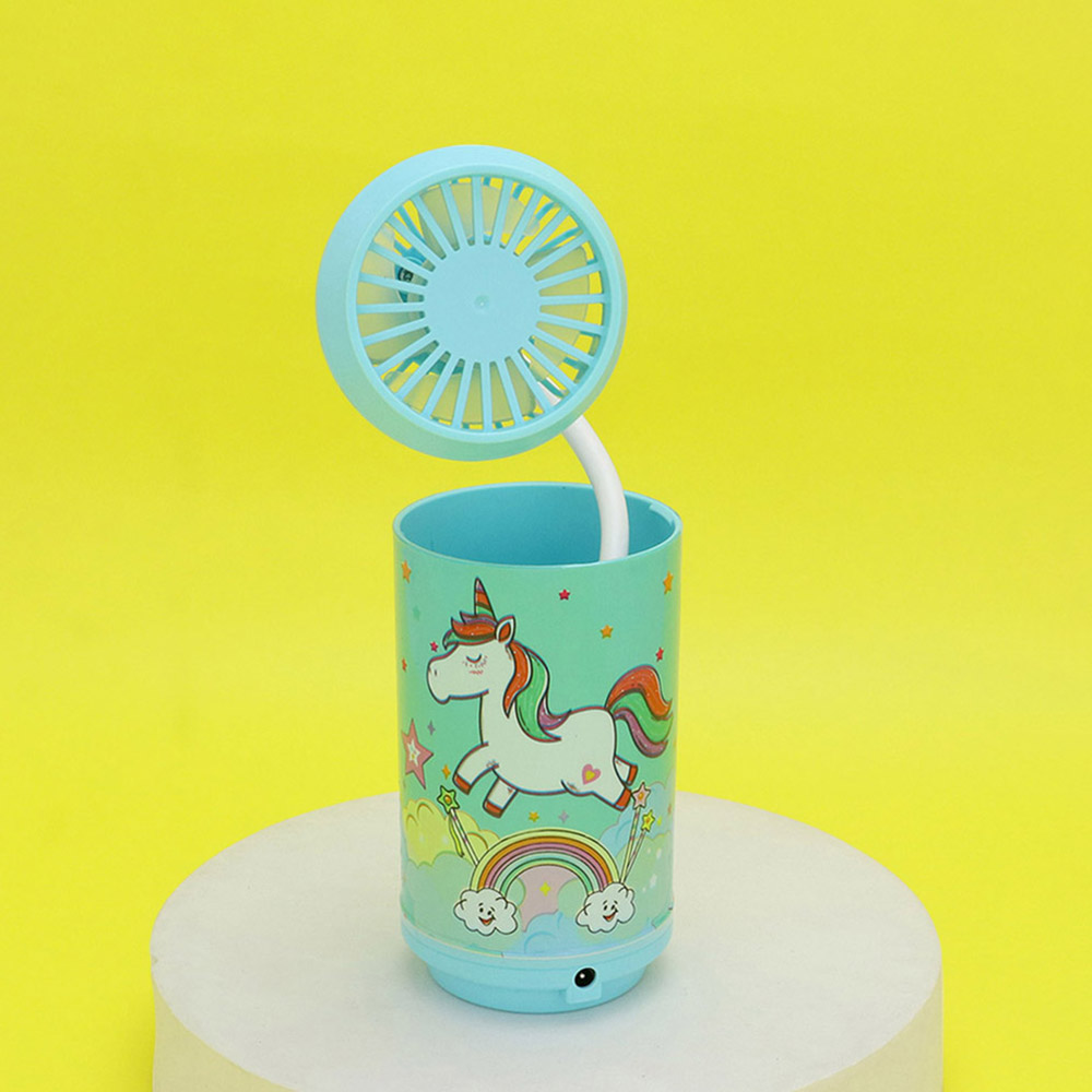 Unicorn Printed Portable Pen Holder Table Fan USB CHARGE
