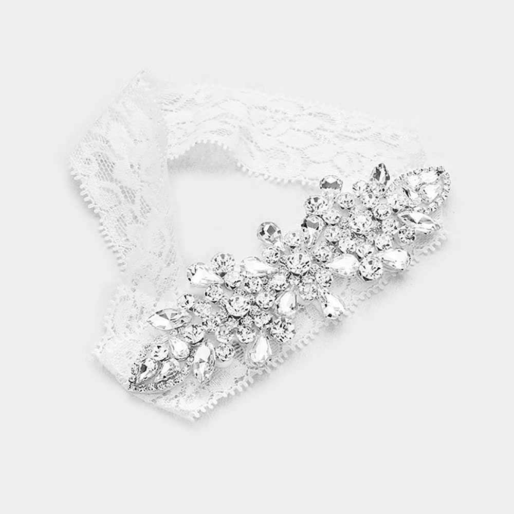 Floral Crystal Pave Lace Stretch Wedding Garter