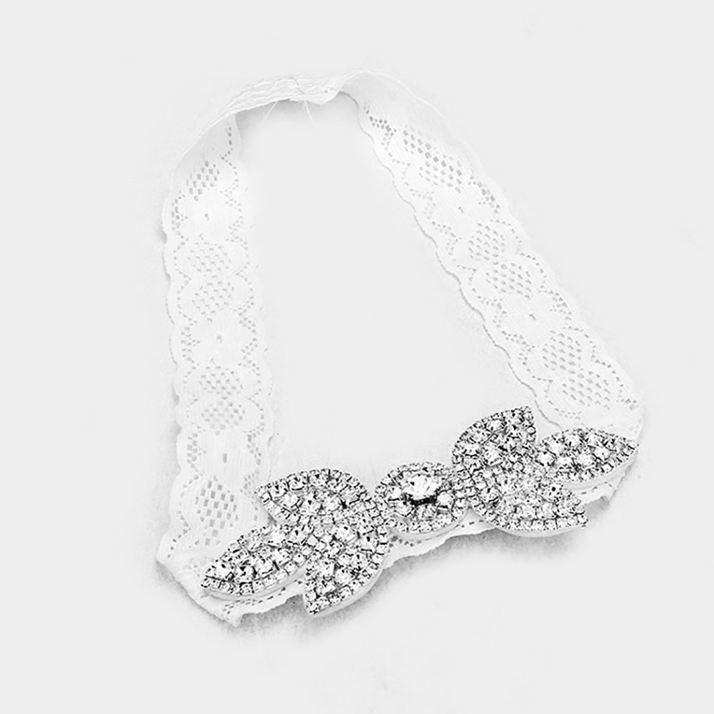 Pave Crystal Rhinestone Leaf Lace Stretch Wedding Garter