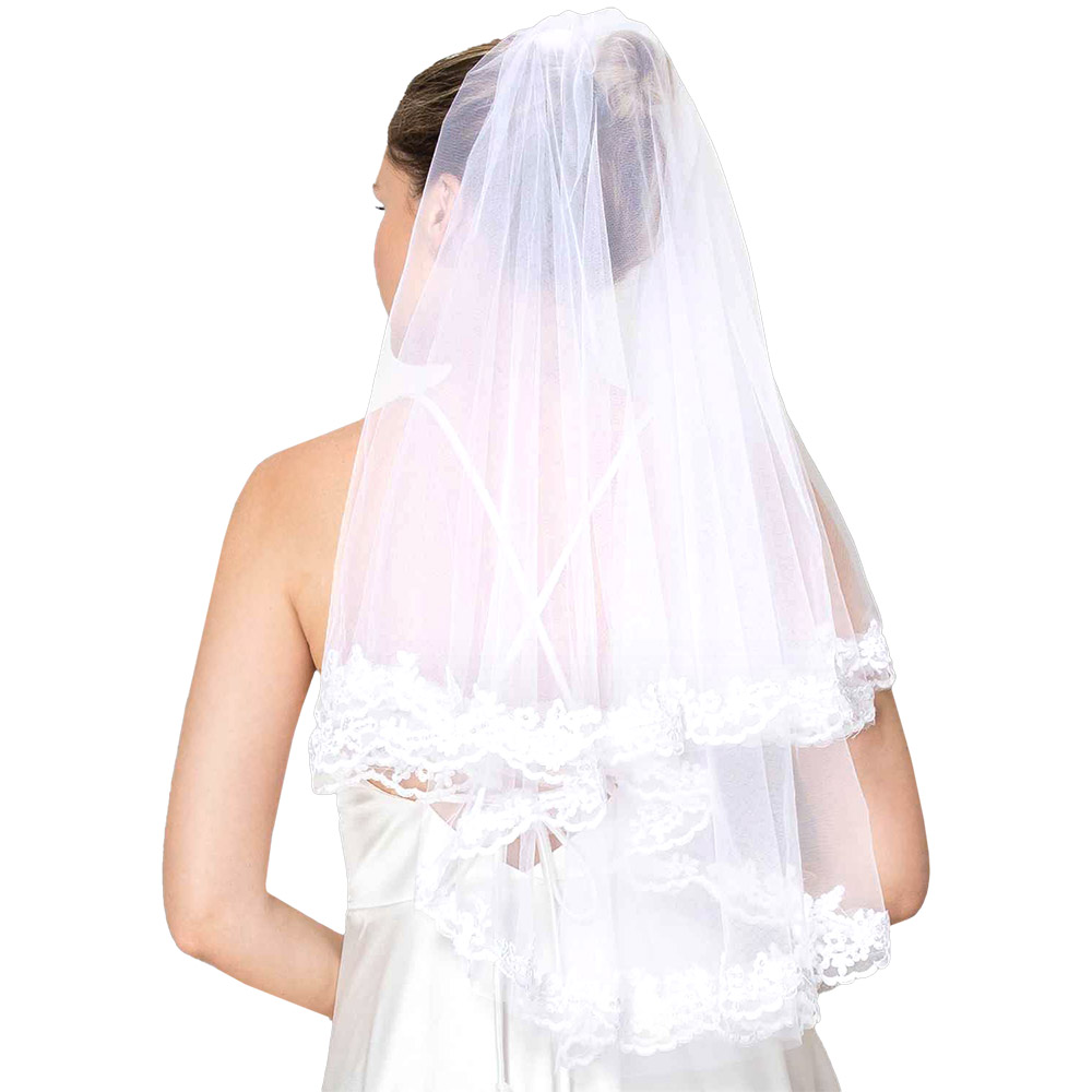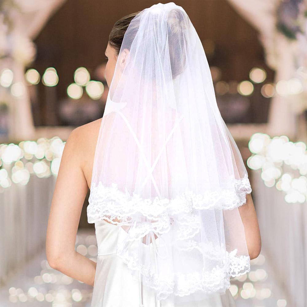 2 Tiers Floral Lace Edge Bridal Wedding Bachelorette Veil