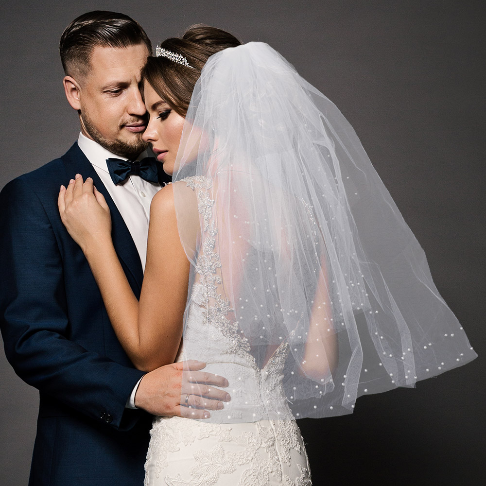 Pearl Embellished 3 Tier Classy Wedding Veil