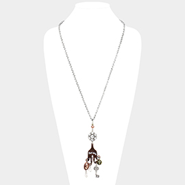 "Believe" Cross Key Lock Pearl Pendants Long Necklace